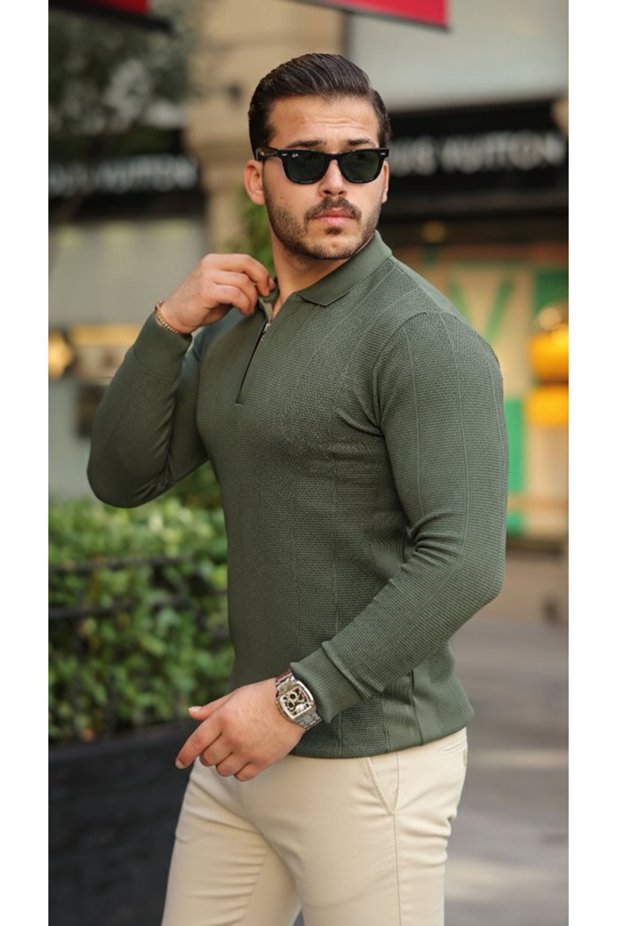 Erkek Pirinç Desenli Uzun Kollu Yakalı Triko