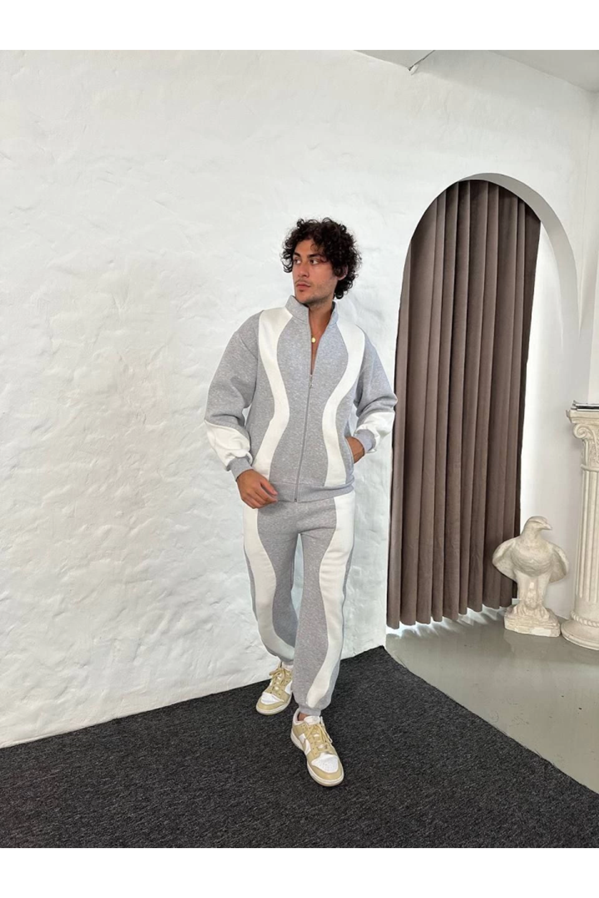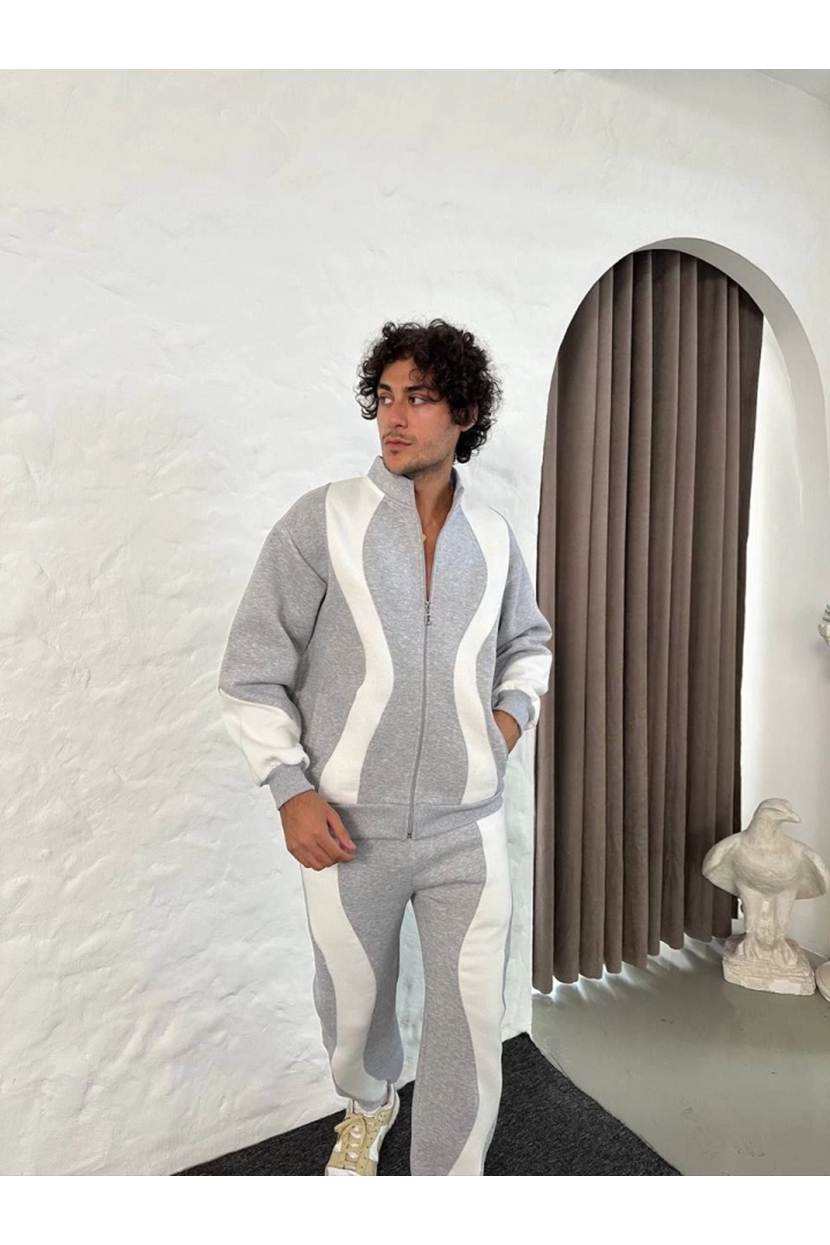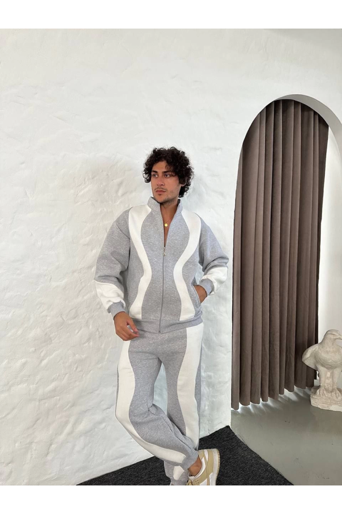 Erkek Premium Parçalı Eşofman Takım - Dik Yaka Fermuarlı Sweatshirt, - Gri
