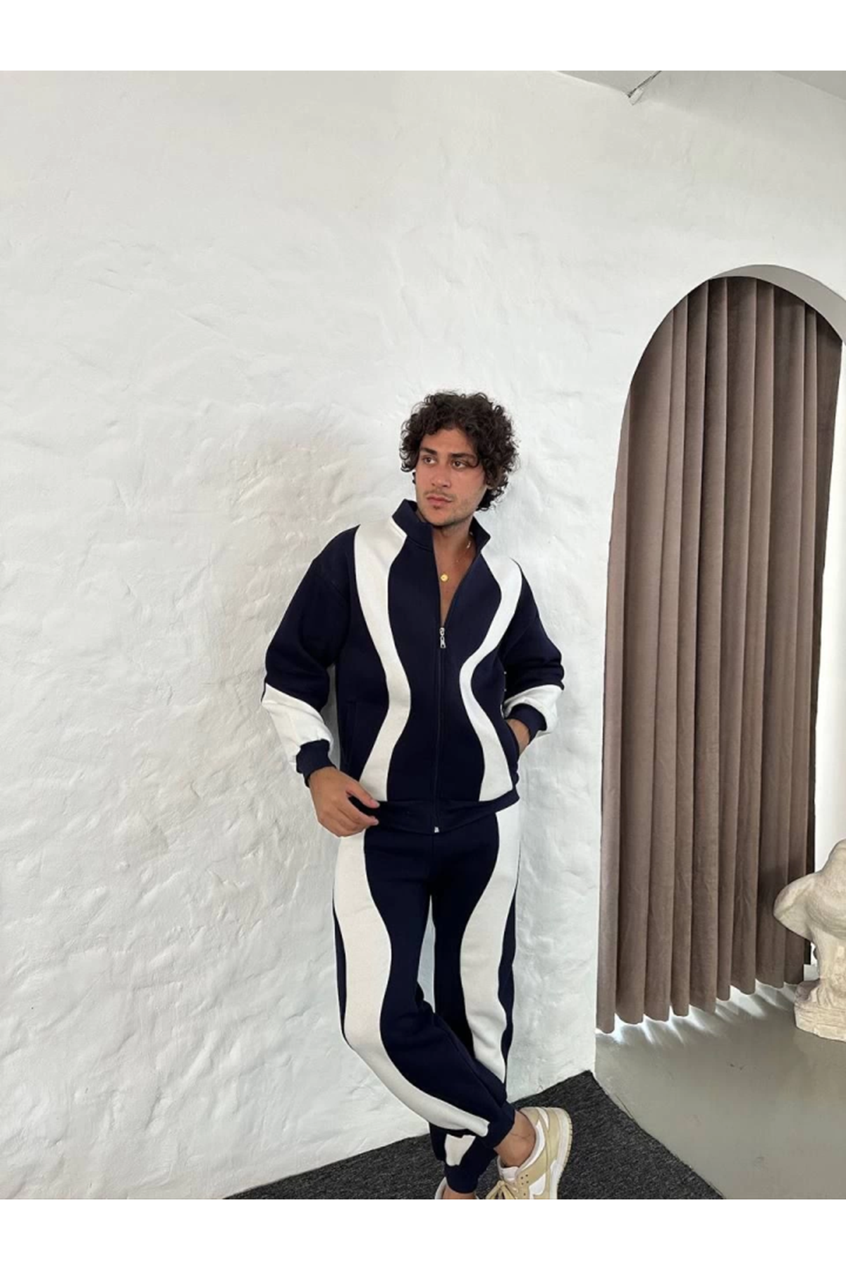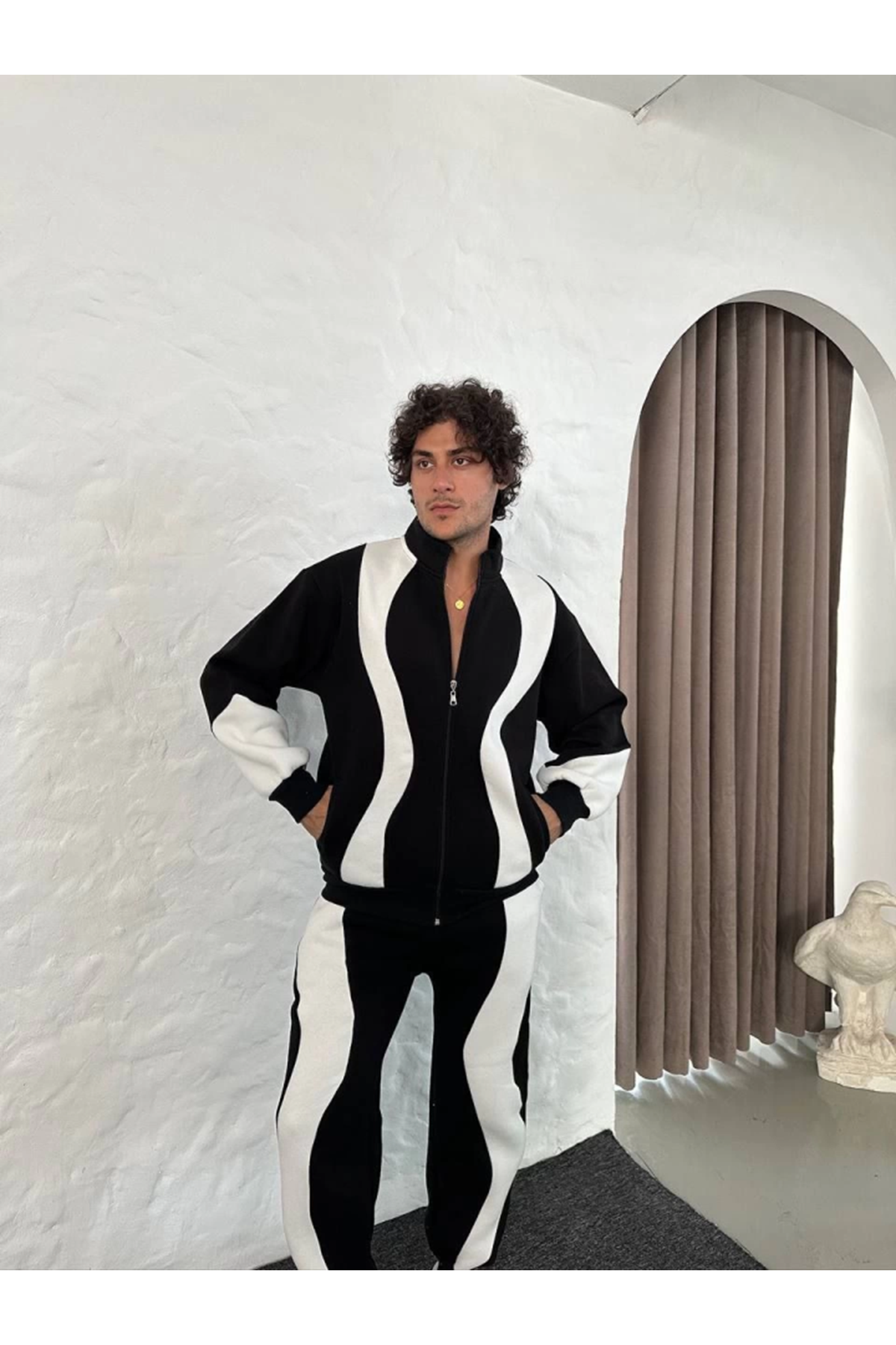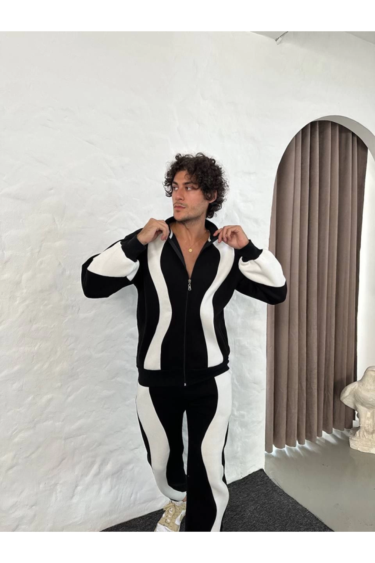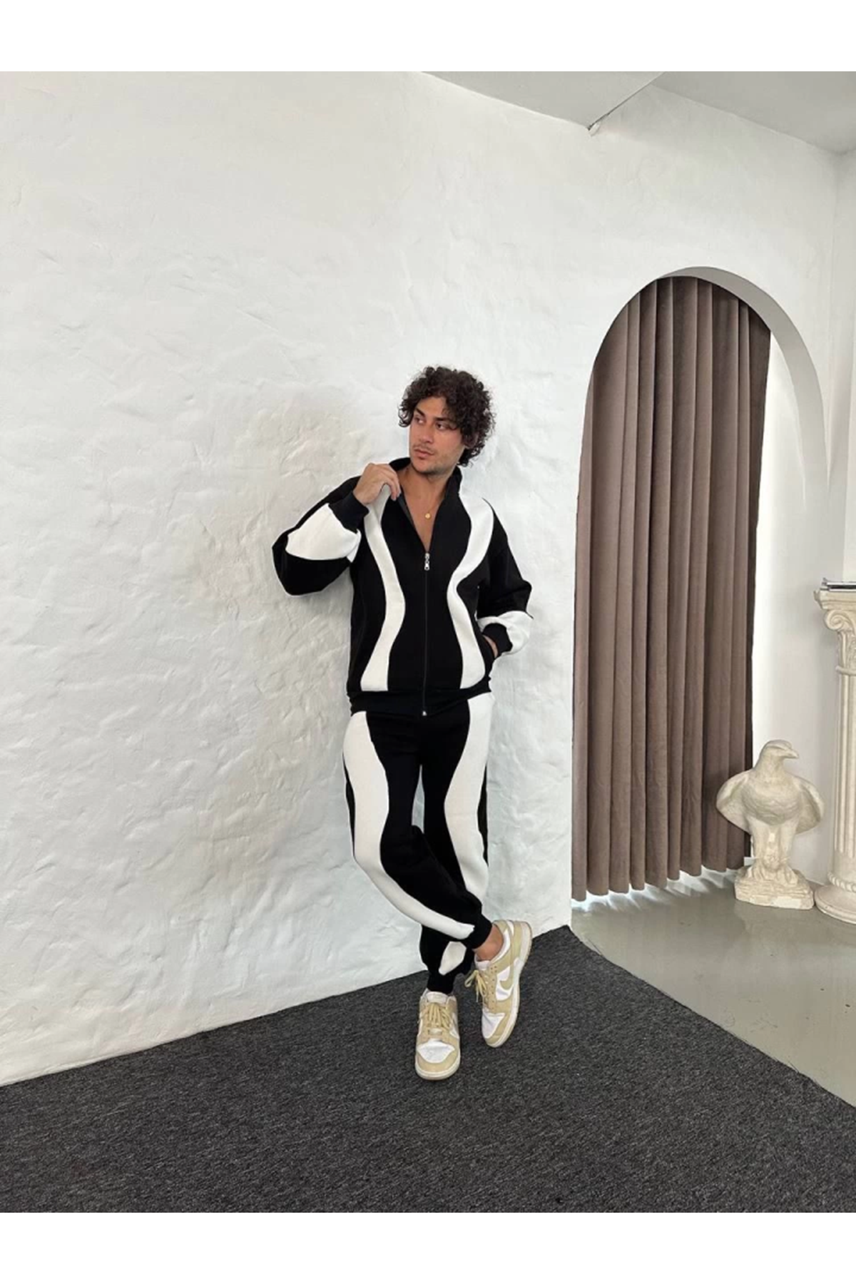 Erkek Premium Parçalı Eşofman Takım - Dik Yaka Fermuarlı Sweatshirt, - Siyah