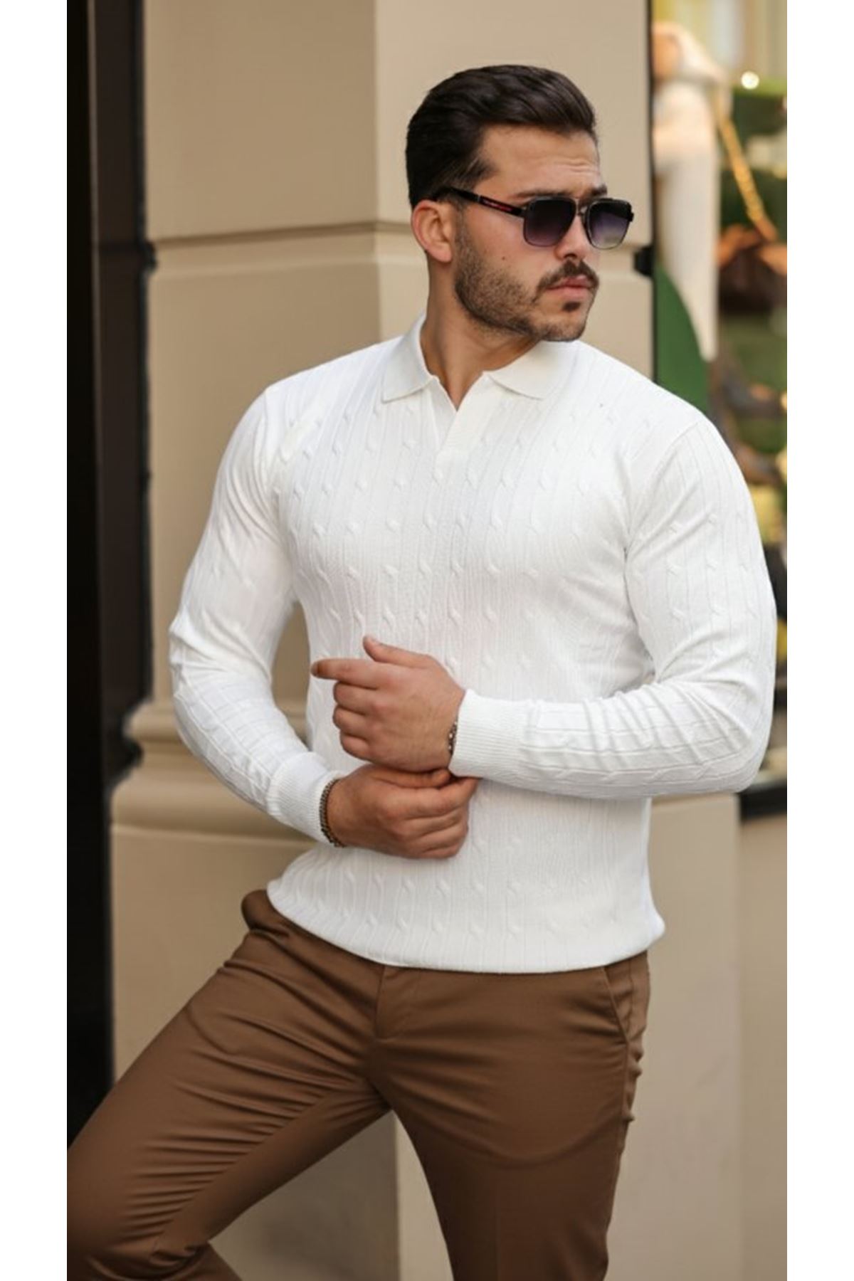 Erkek Saç örgü Desen Uzun Kollu Triko