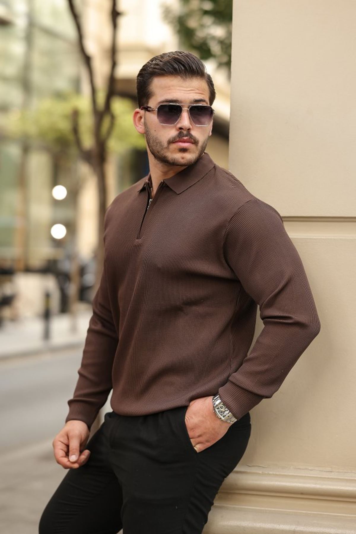 Erkek Selanik örme Yakalı Uzun Kollu Triko