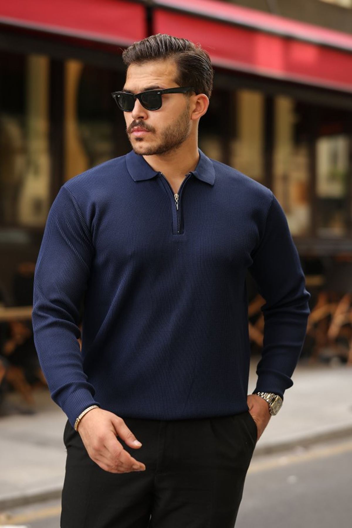 Erkek Selanik örme Yakalı Uzun Kollu Triko