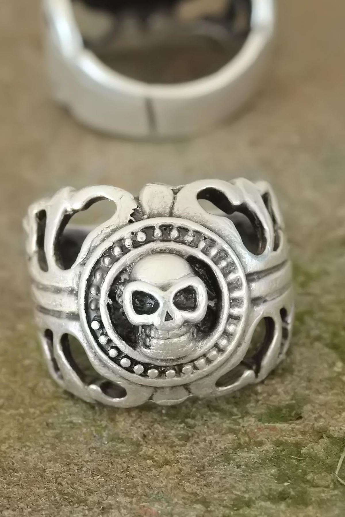 Eskitme Gümüş Renk Metal Kuru Kafa Tasarım Ayarlamalı Erkek Yüzük - TJ-EY230-KS