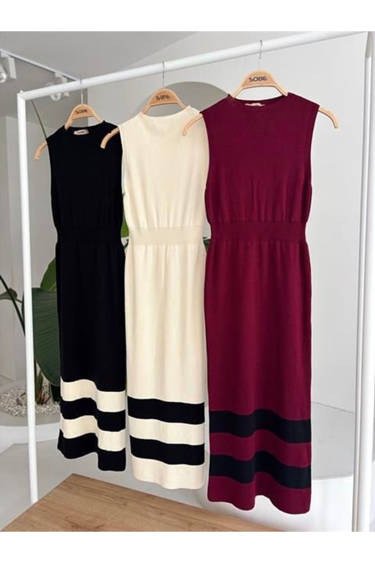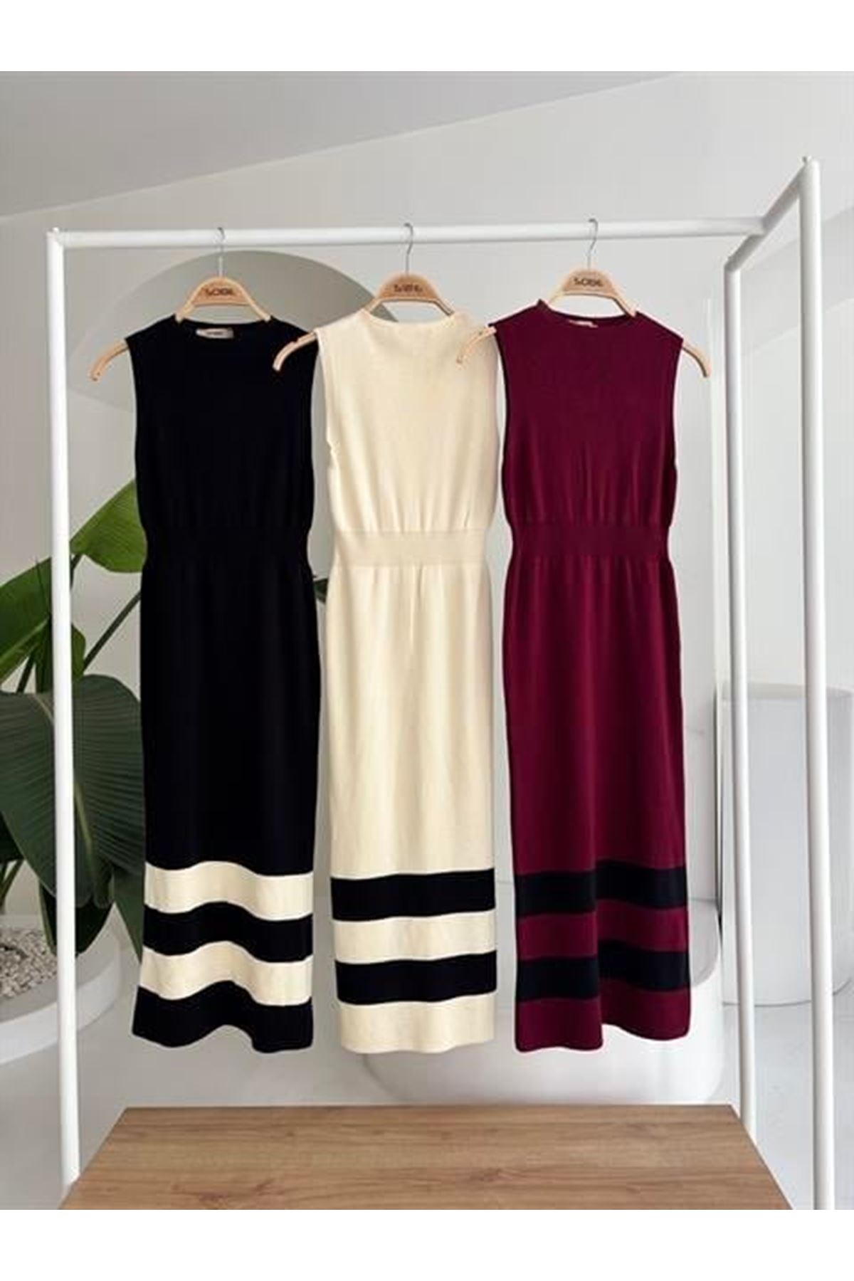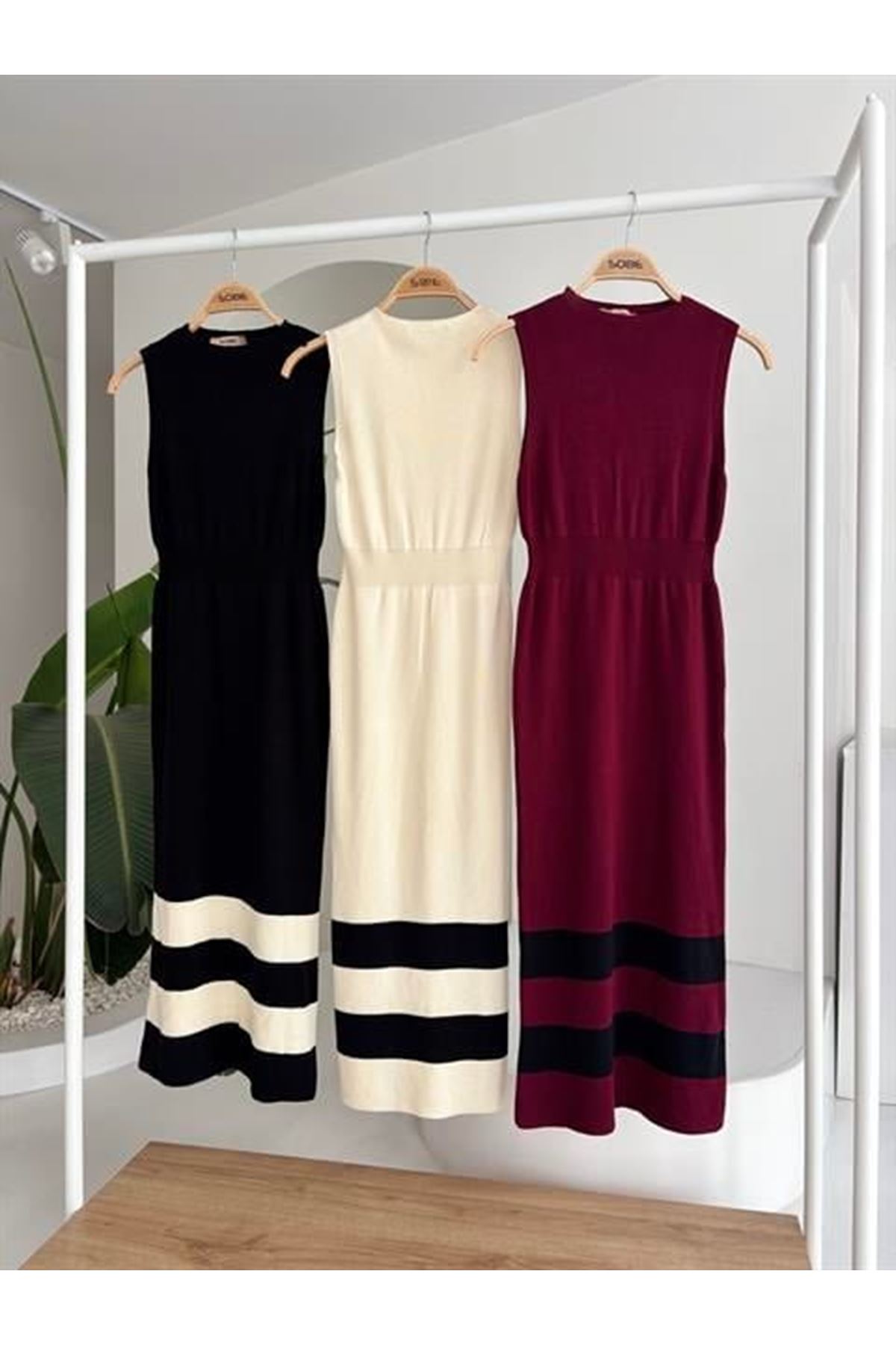 Etek Ucu Şerit Detaylı Triko Elbise 2831