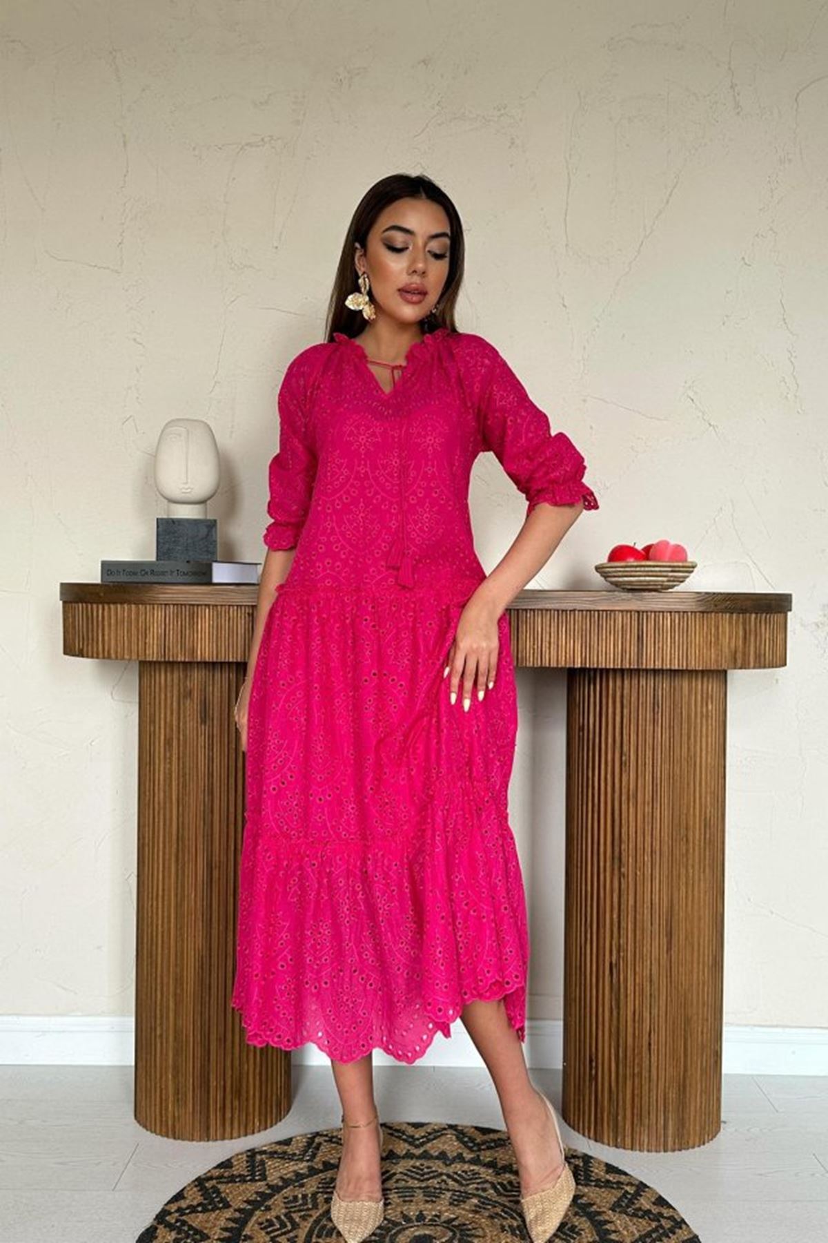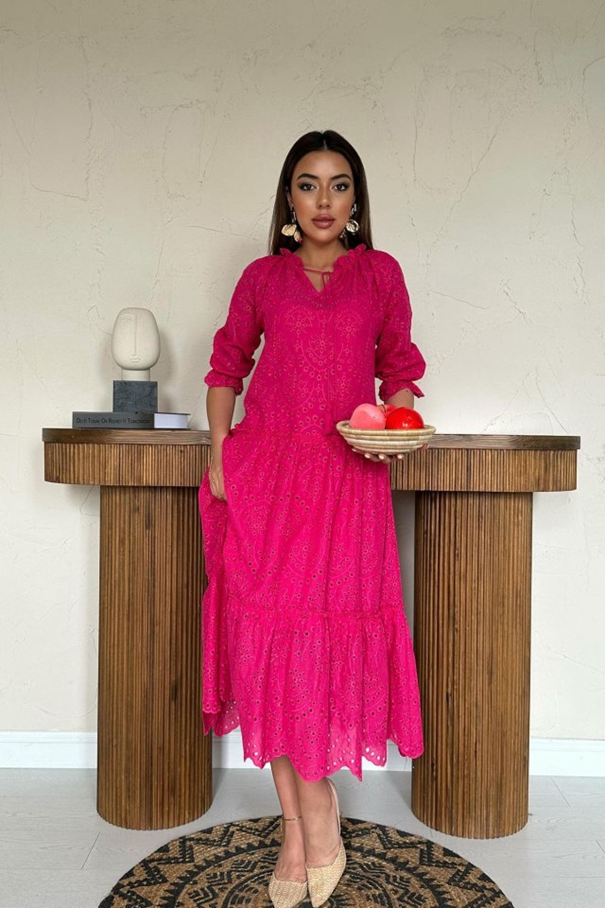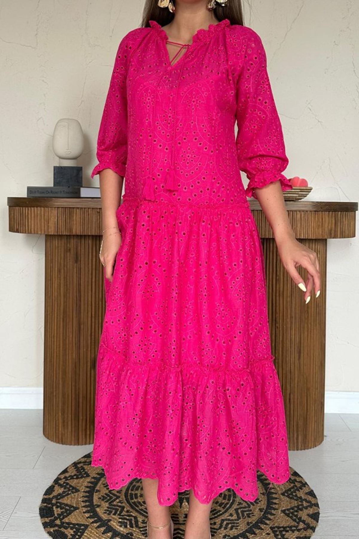 Fuşya Dantelli New Elbise