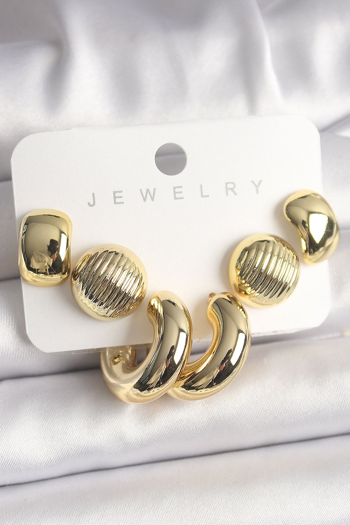Gold Renk Kalp Halka Model CCB Plastik Kadın Küpe Seti - TJ-BKP10024