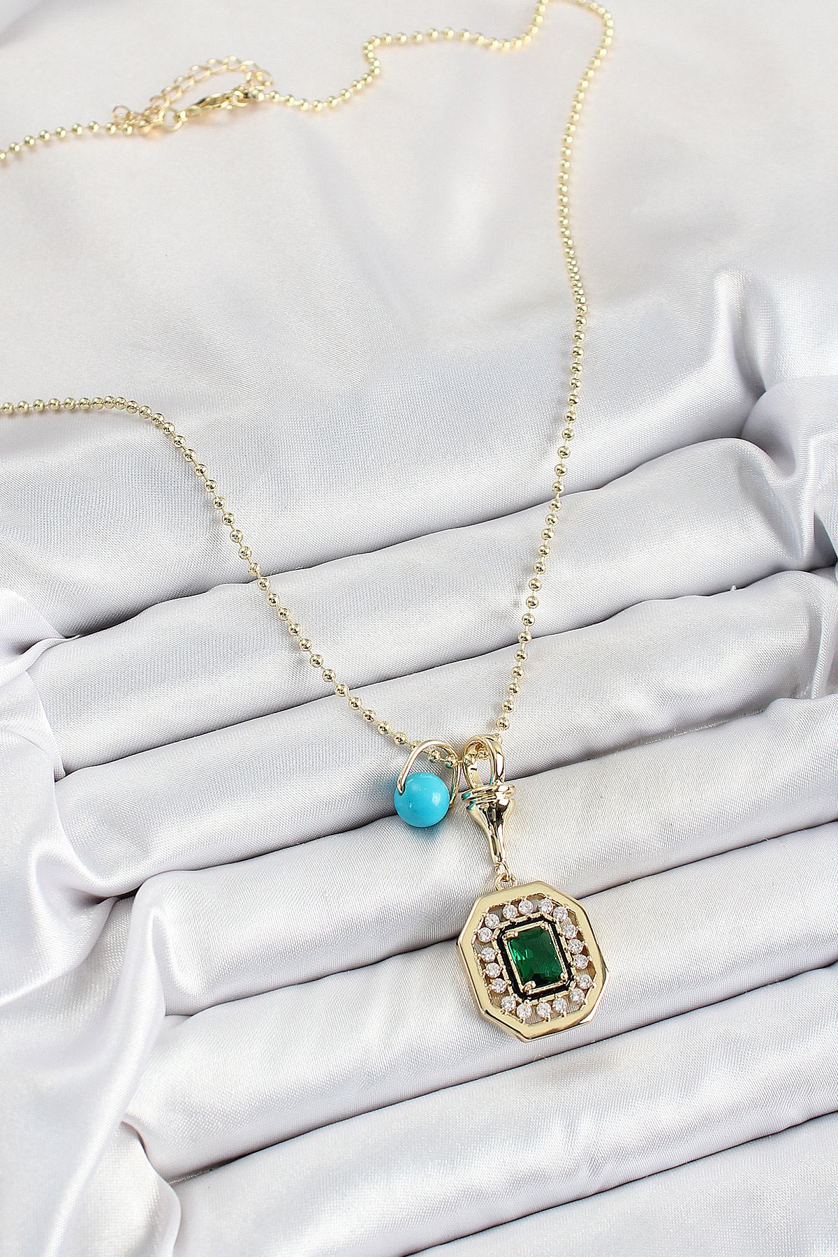 Gold Renk Pirinç Zirkon Taşlı Kadın Serenay Kolyesi - TJ-BKO10304