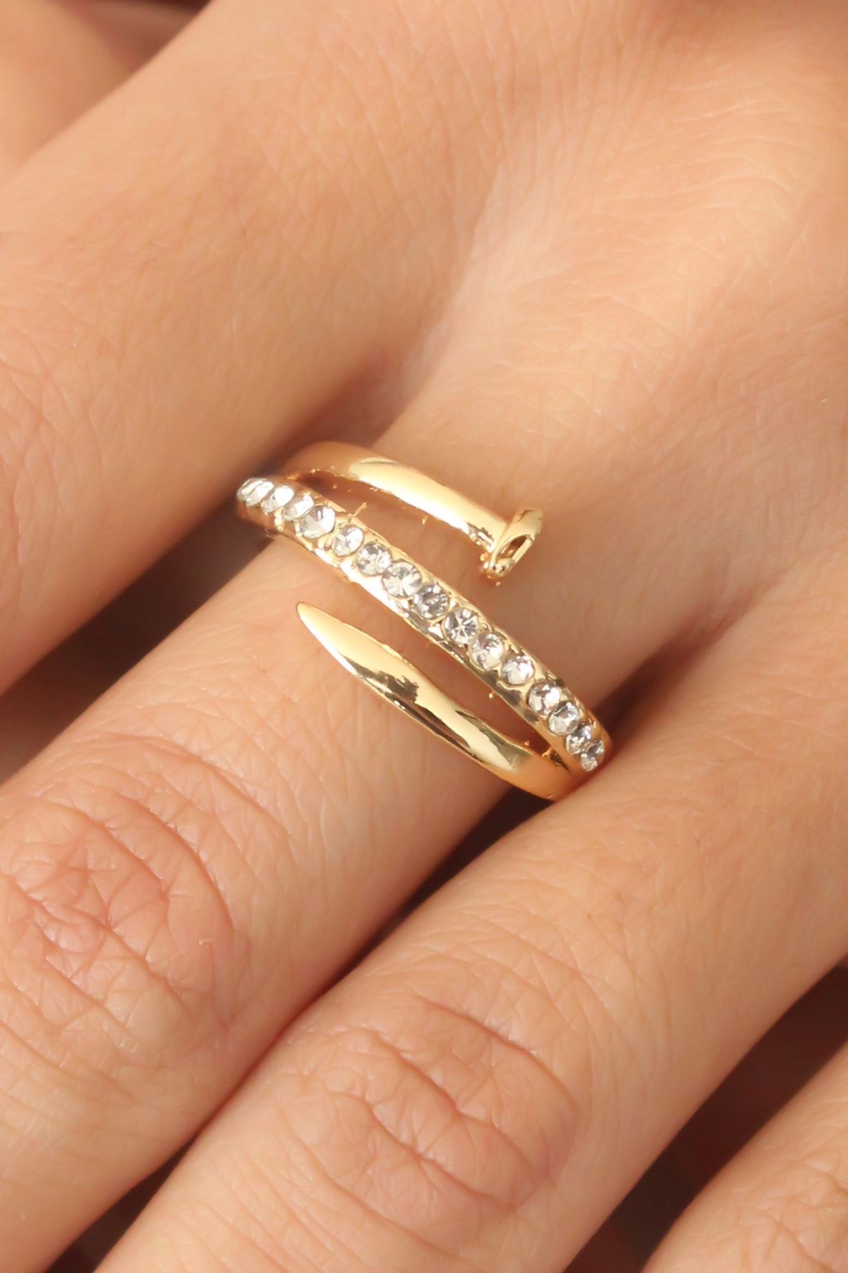 Gold Renk Taşlı Çivi Ayarlanabilir Kadın Yüzük - TJ-BYK2408
