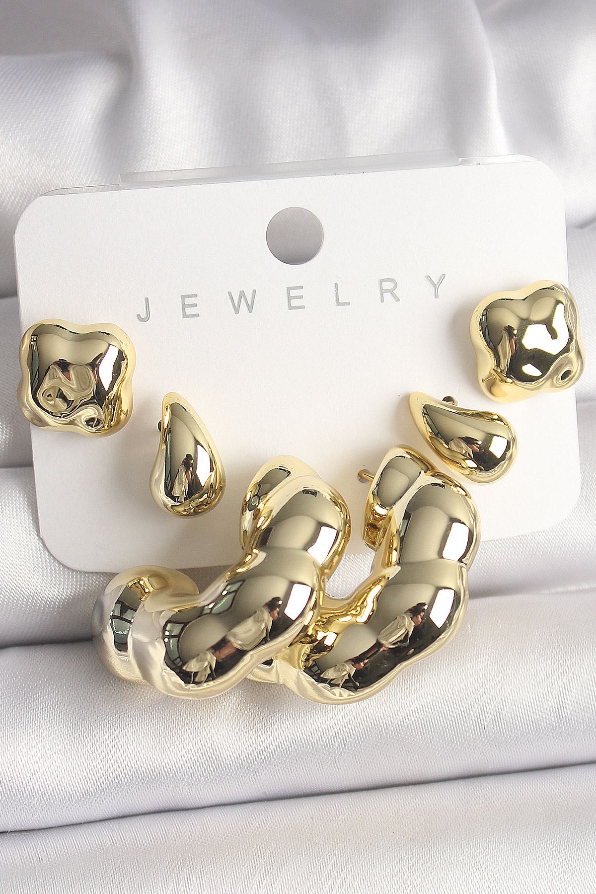 Gold Renk Yonca Damla Halka Model CCB Plastik Kadın Küpe Seti - TJ-BKP10028