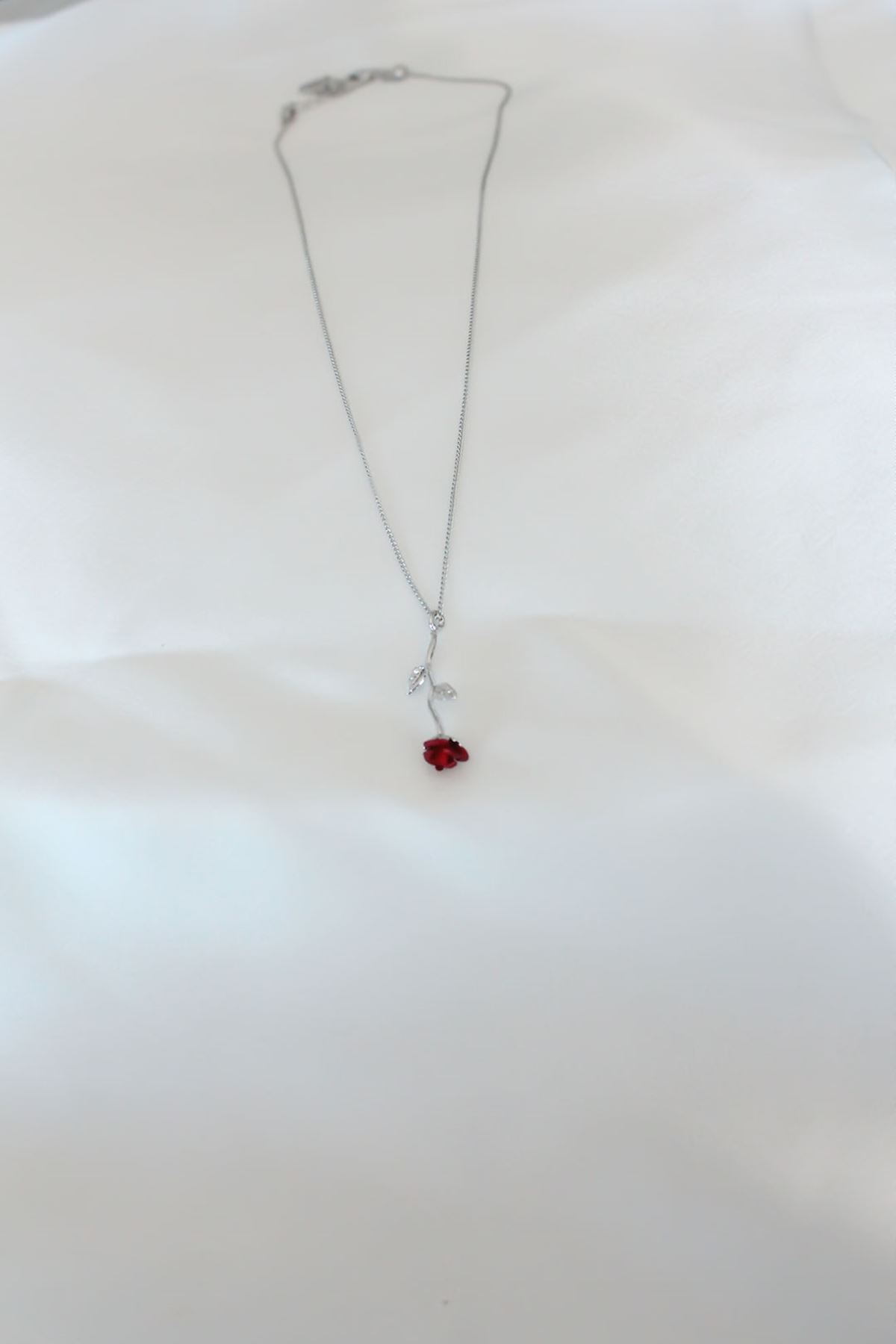 Gümüş Kaplama Kırmızı Gül Figürlü Kadın Kolye - TJ-BKO6441