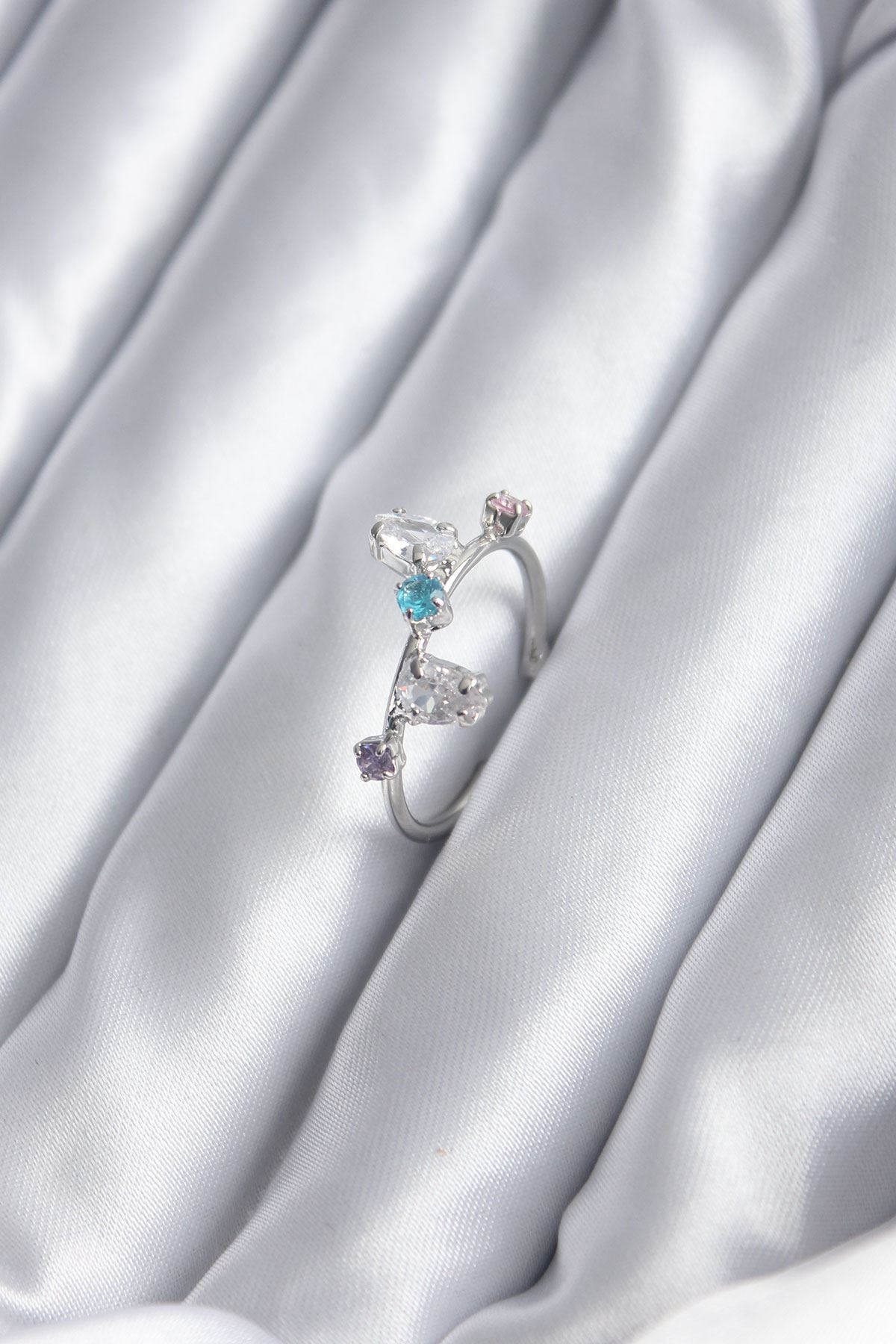 Gümüş Renk Renkli Zirkon Taşlı Kadın Yüzük - TJ-BYK2843