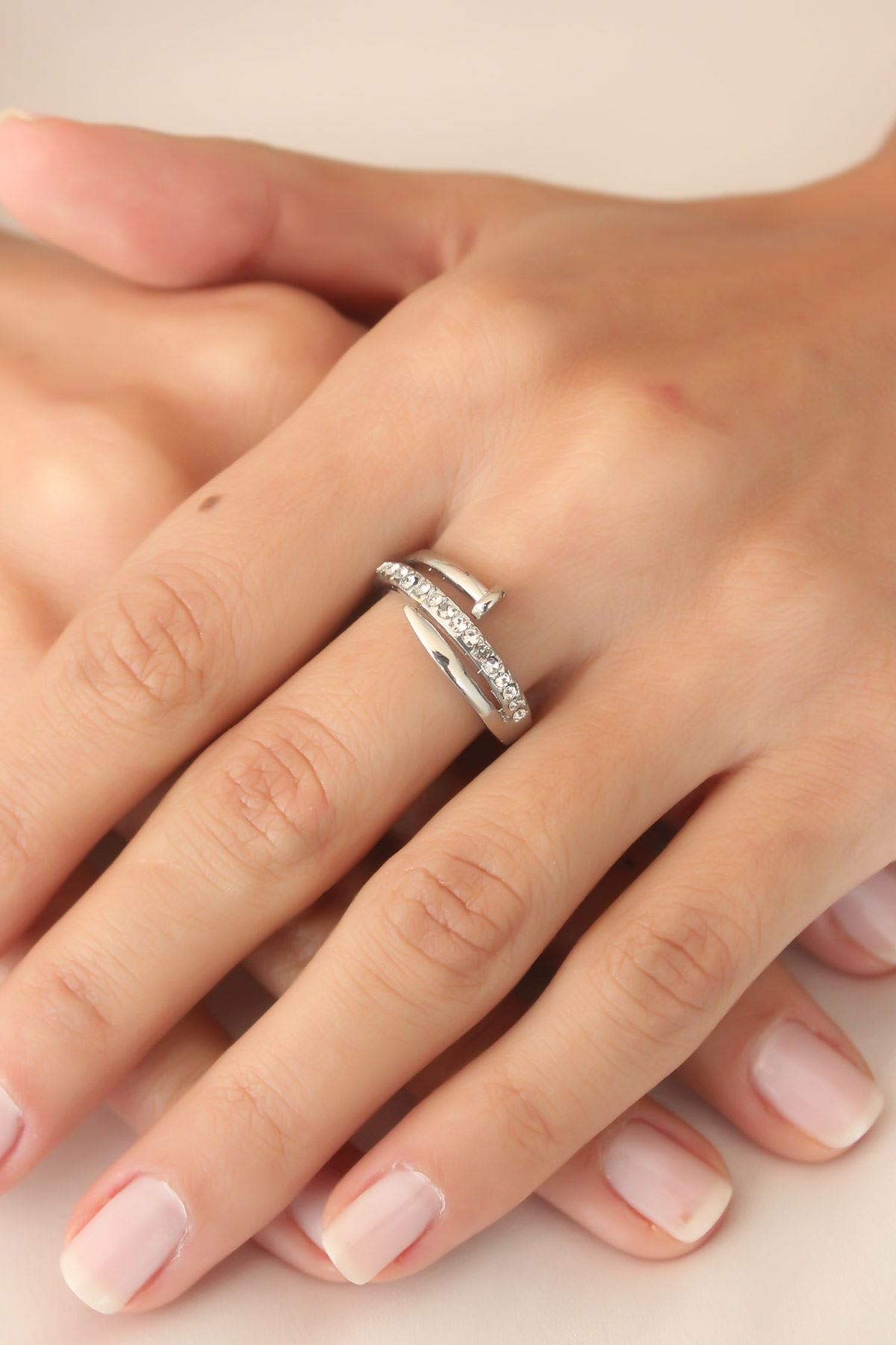 Gümüş Renk Taşlı Çivi Ayarlanabilir Kadın Yüzük - TJ-BYK2407