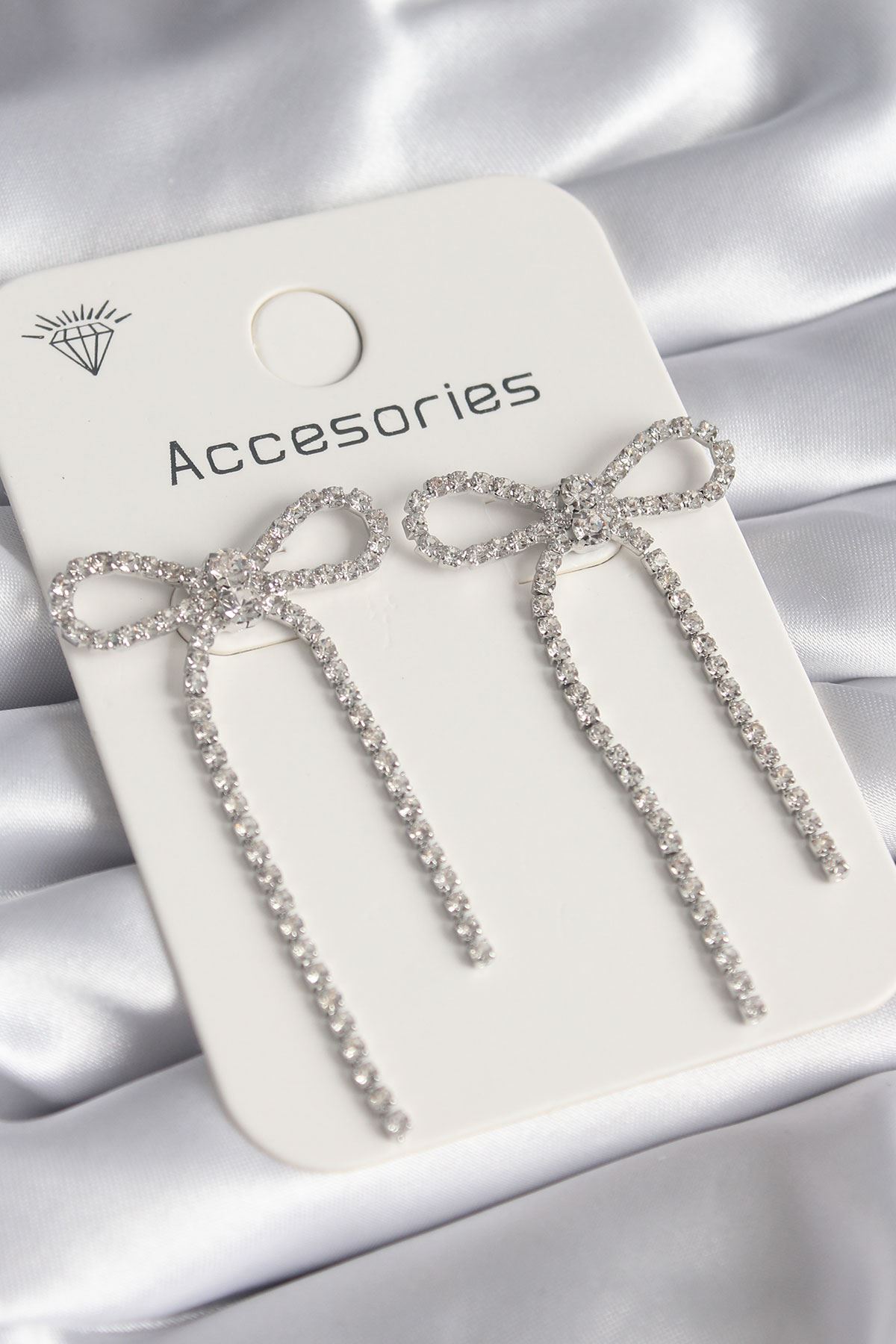 Gümüş Renk Zirkon Taşlı Fiyonk Model Kadın Küpe - TJ-BKP8559