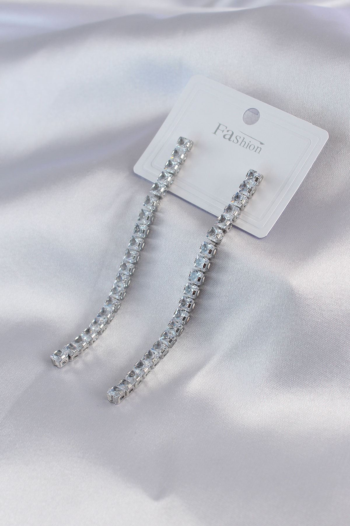Gümüş Renk Zirkon Taşlı Kadın Küpe - TJ-BKP7465
