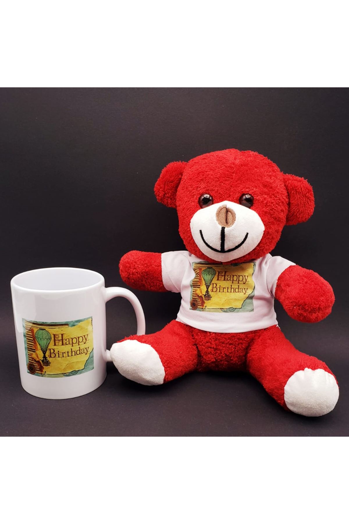 Happy Birthday Baskılı Kırmızı Ayı Ve Kupa Bardak Seti