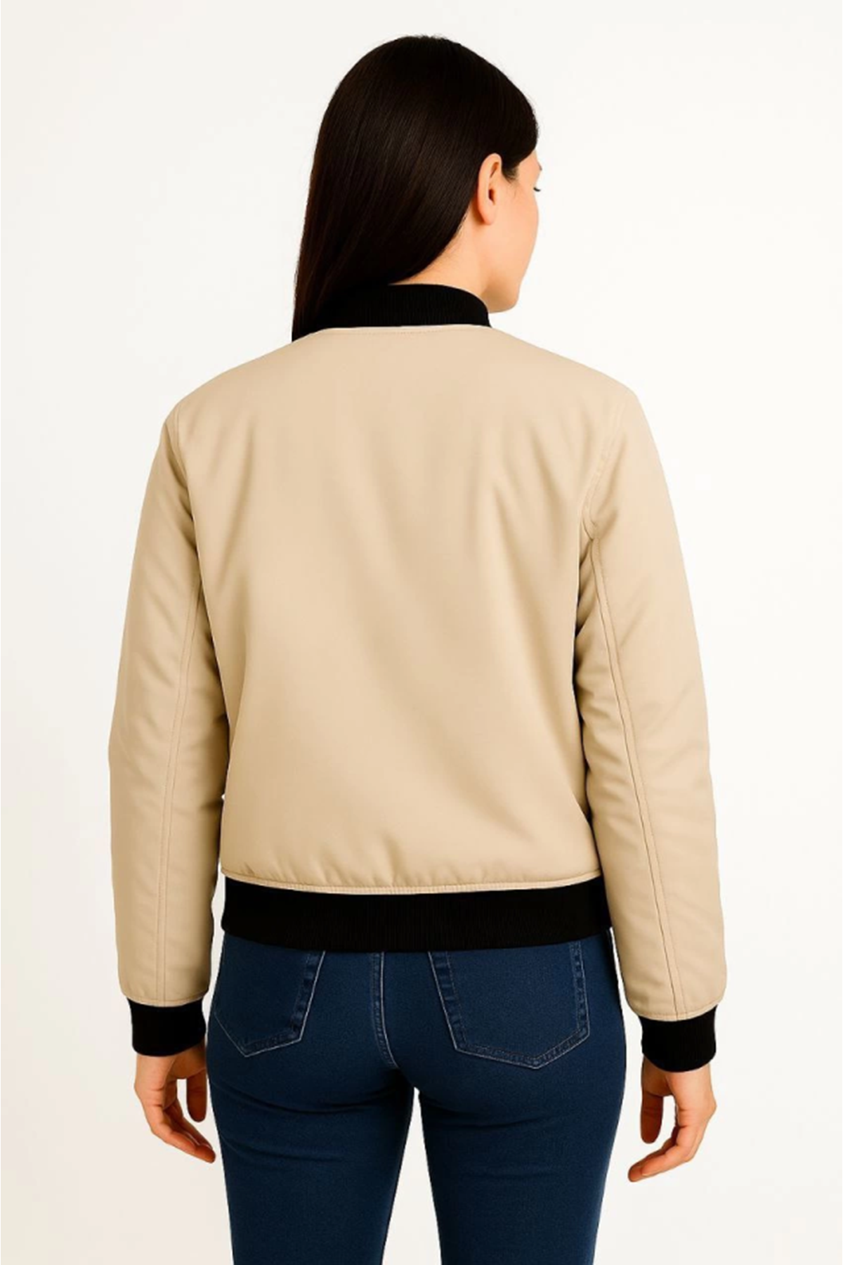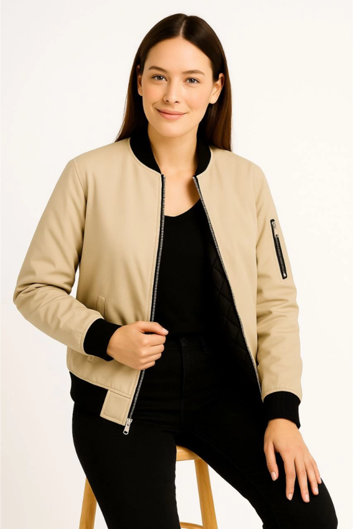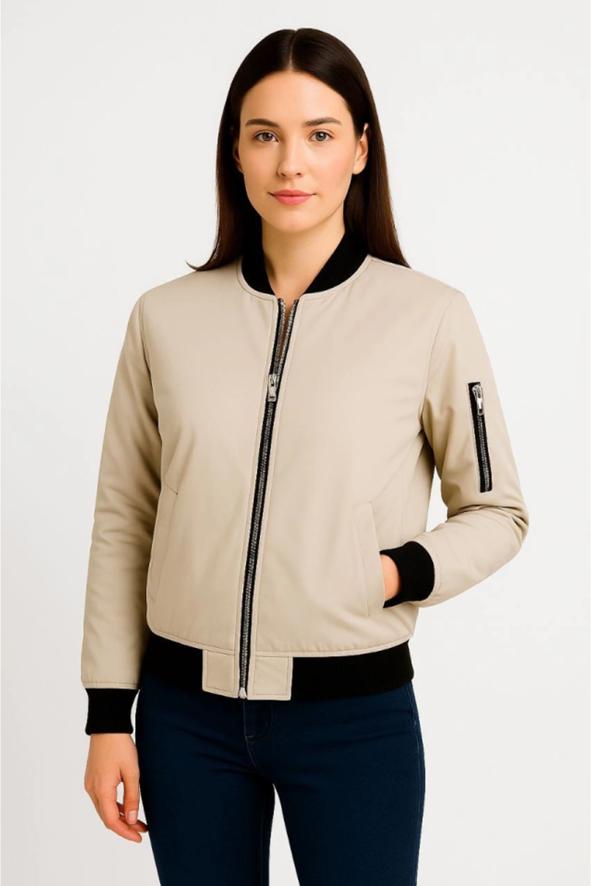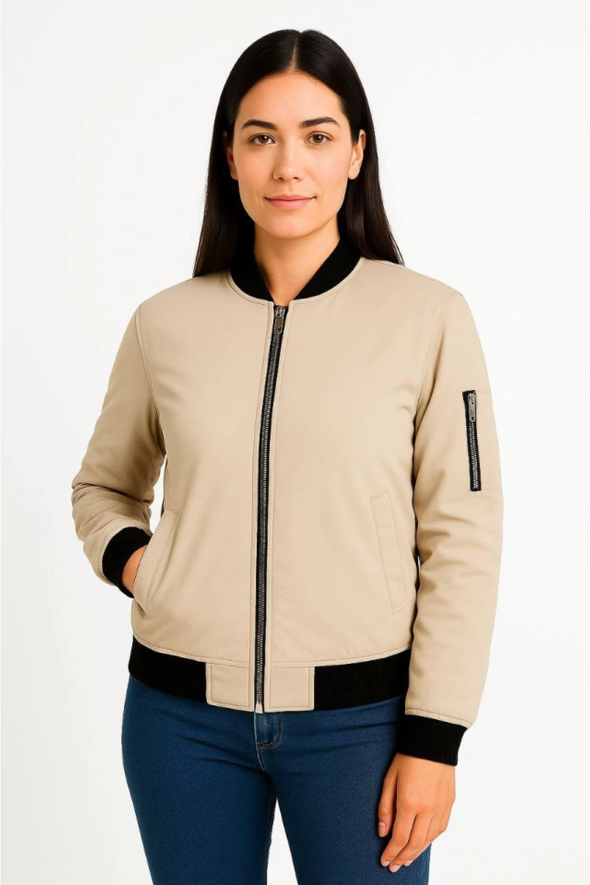 Içi Astarlı Fermuarlı Bomber Mont Ceket - Bej