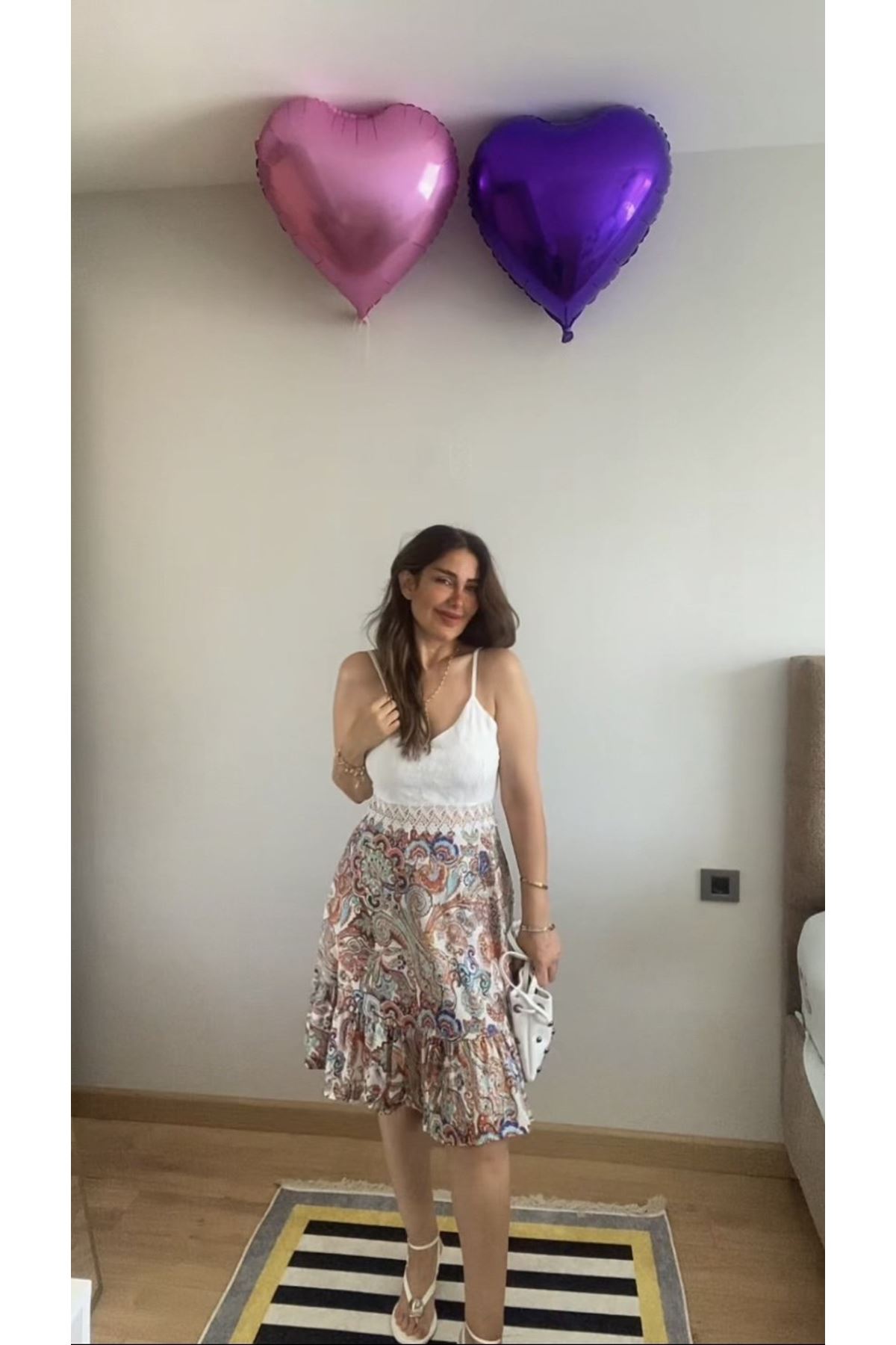 Kadın Askılı V Yakalı üst Dantel Alt Süprem Mini Elbise