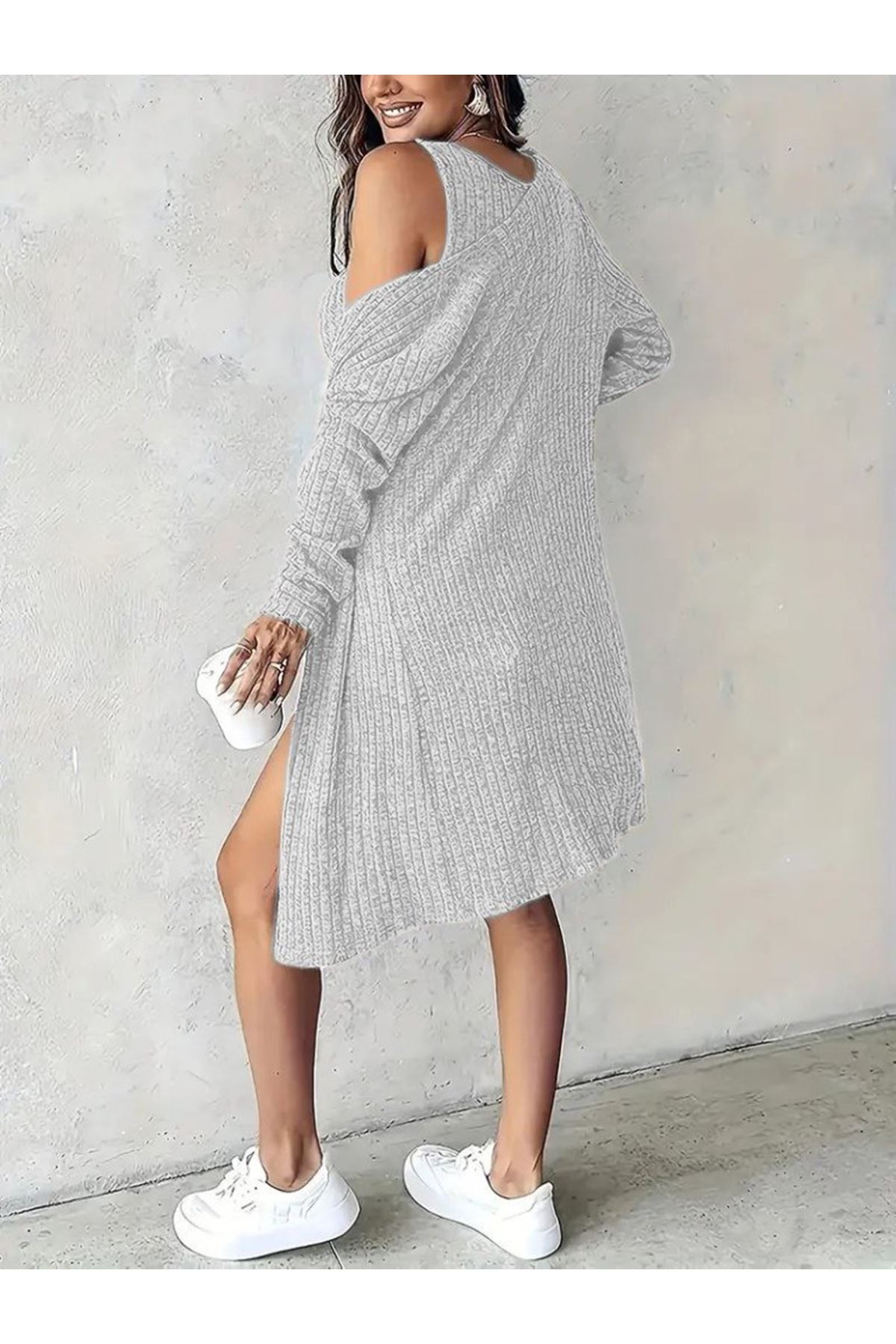 Kadın Askılı Yuvarlak Yakalı önü Düğmeli şardonlu Kaşkorse Mini Elbise Ve Kısa Ceket