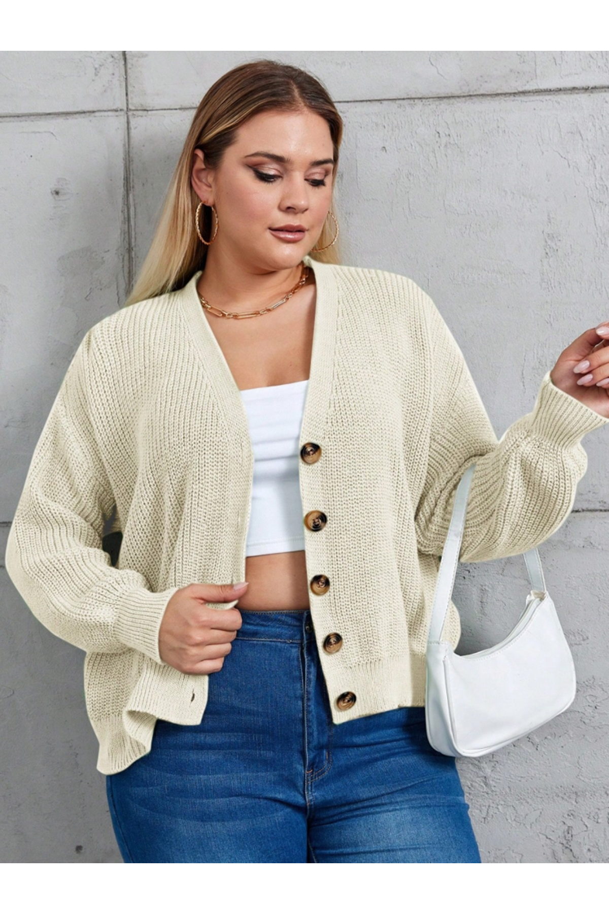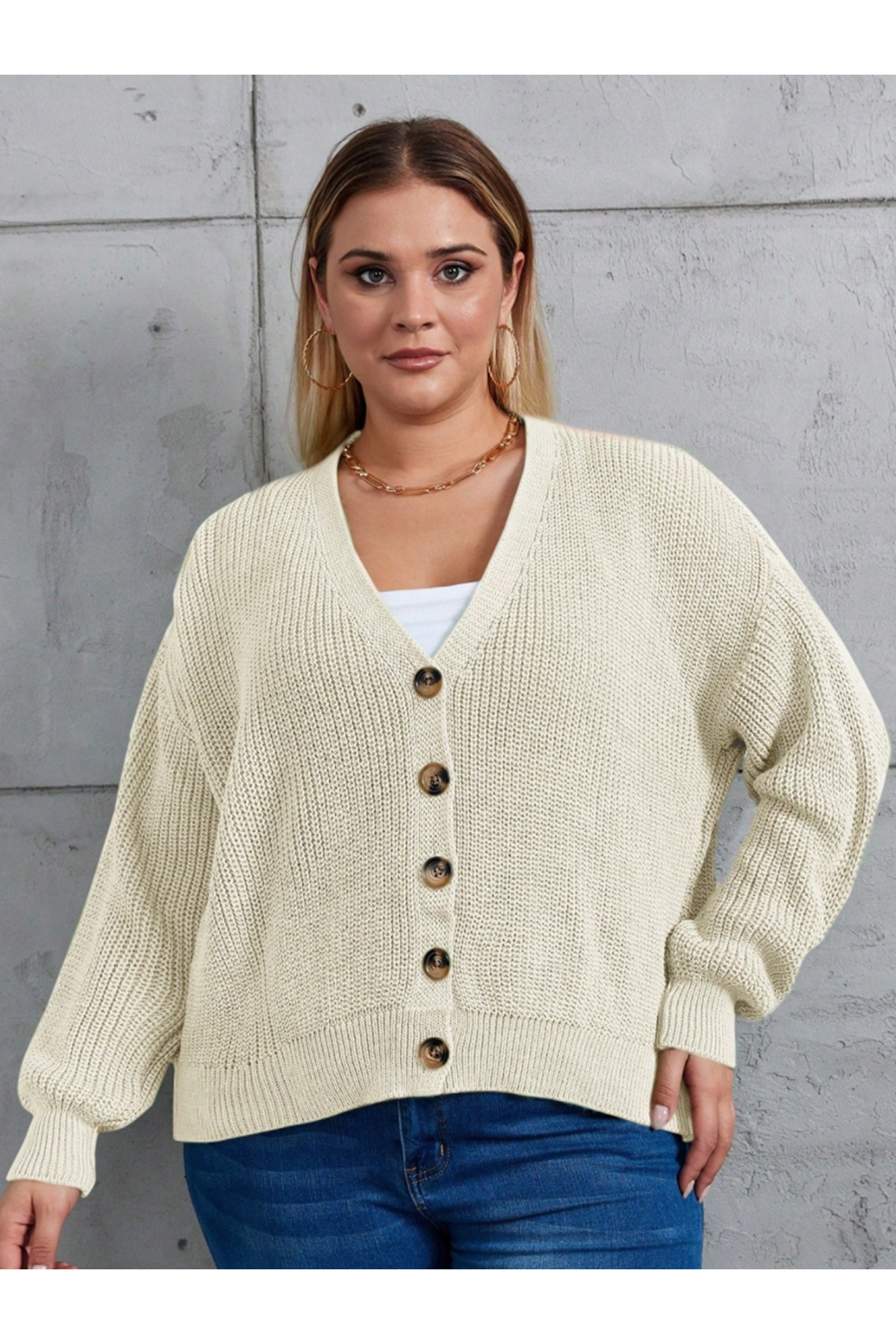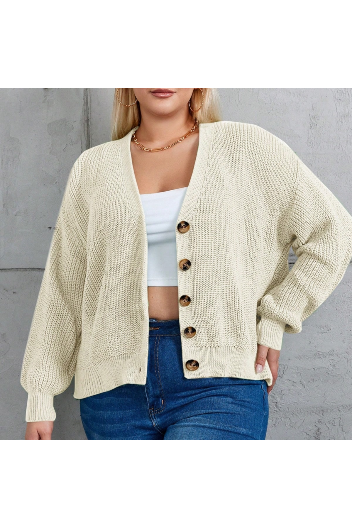 Kadın Beş Düğme Büyük Beden Triko Hırka