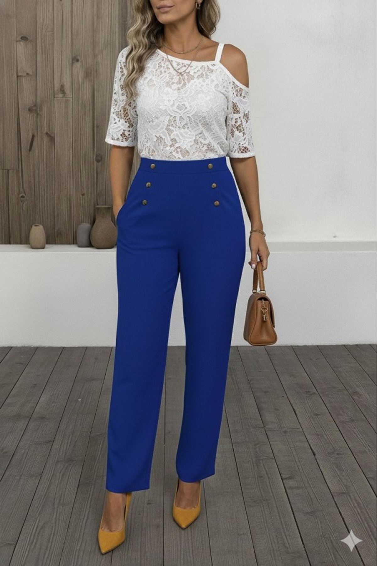 Kadın Düğme Detay Bol Paça Ithal Krep Pantolon