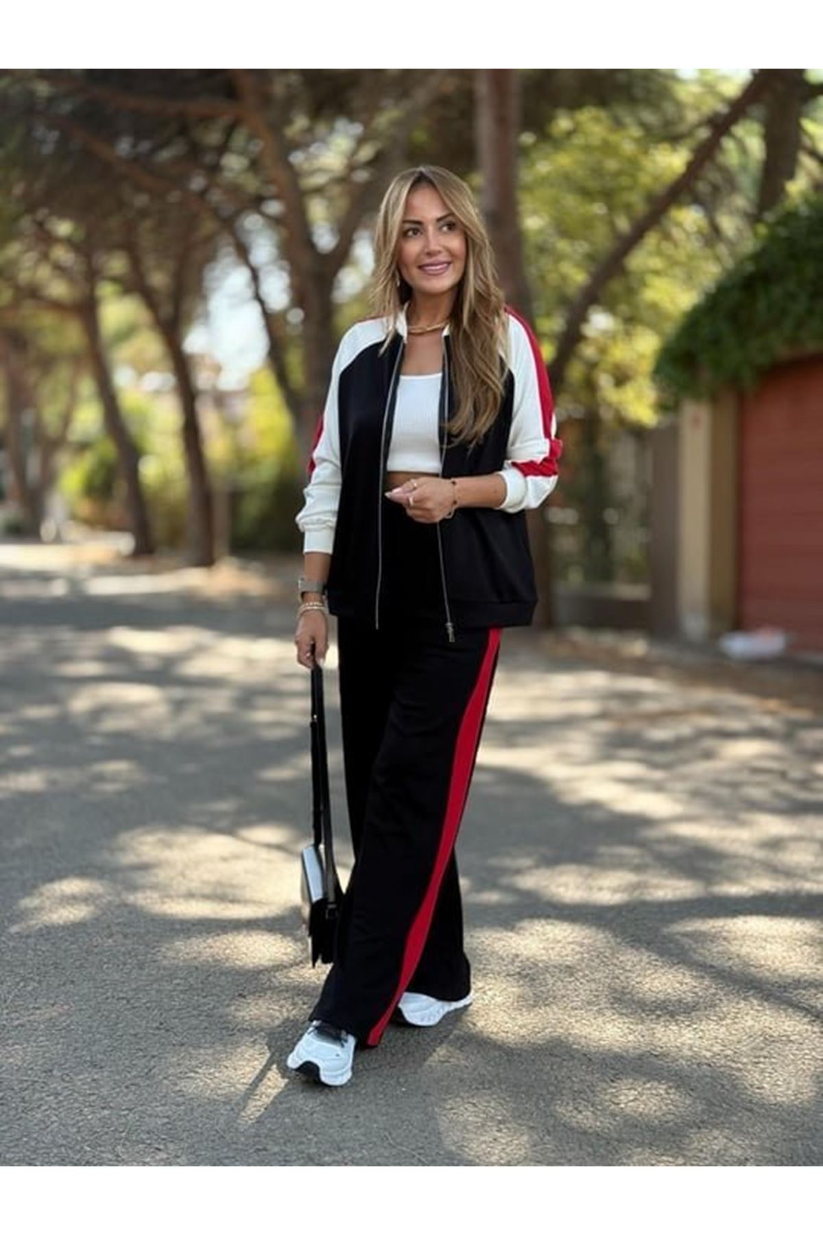 Kadın Hakim Yaka şerit Detay Hırka Ve Bol Paça Pantolon Ikili Takım