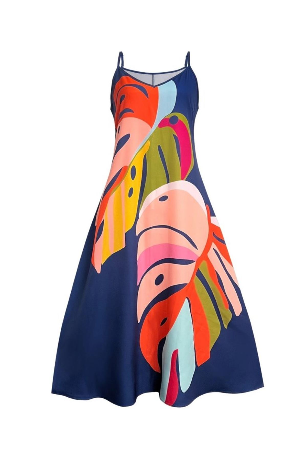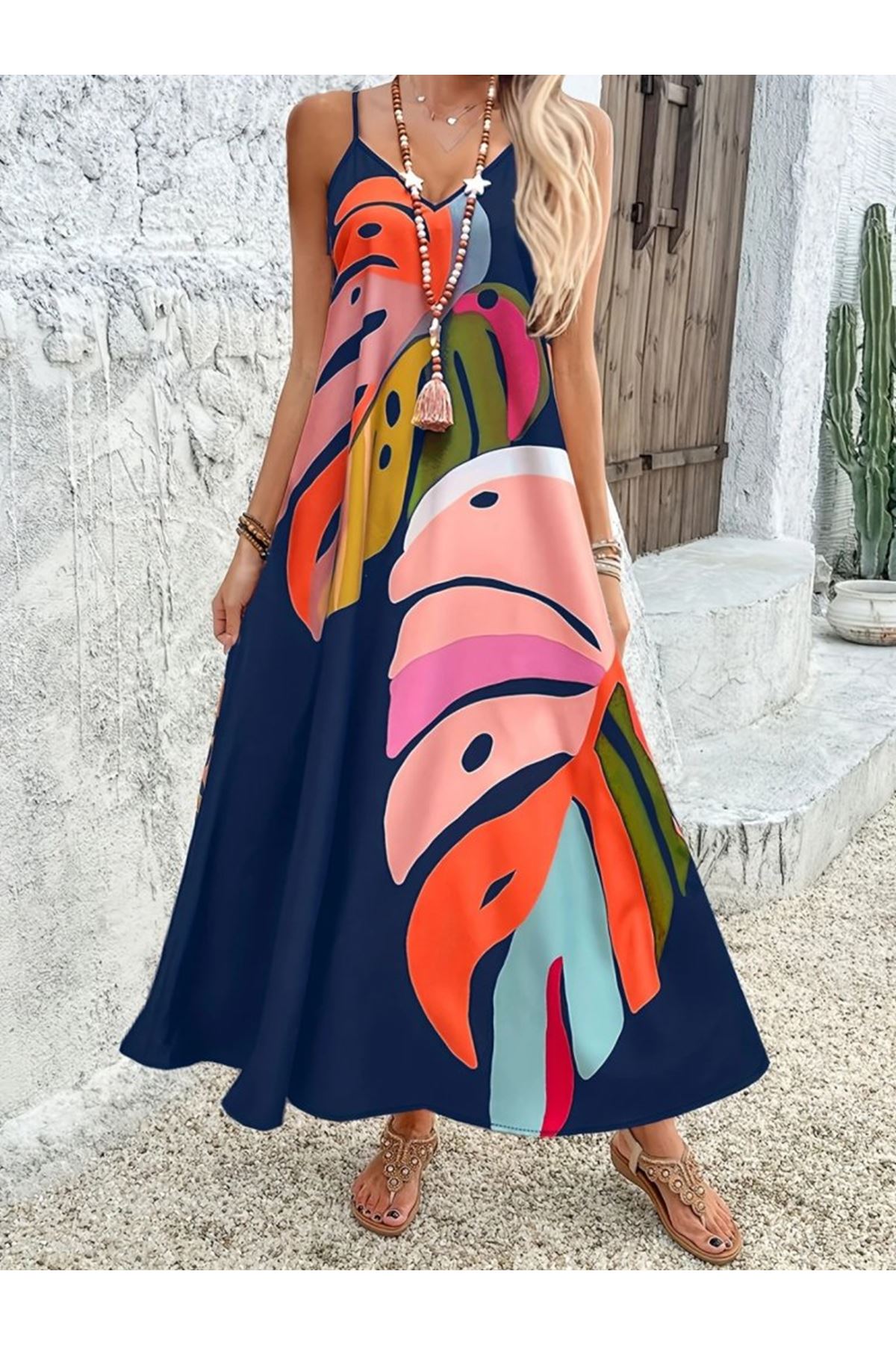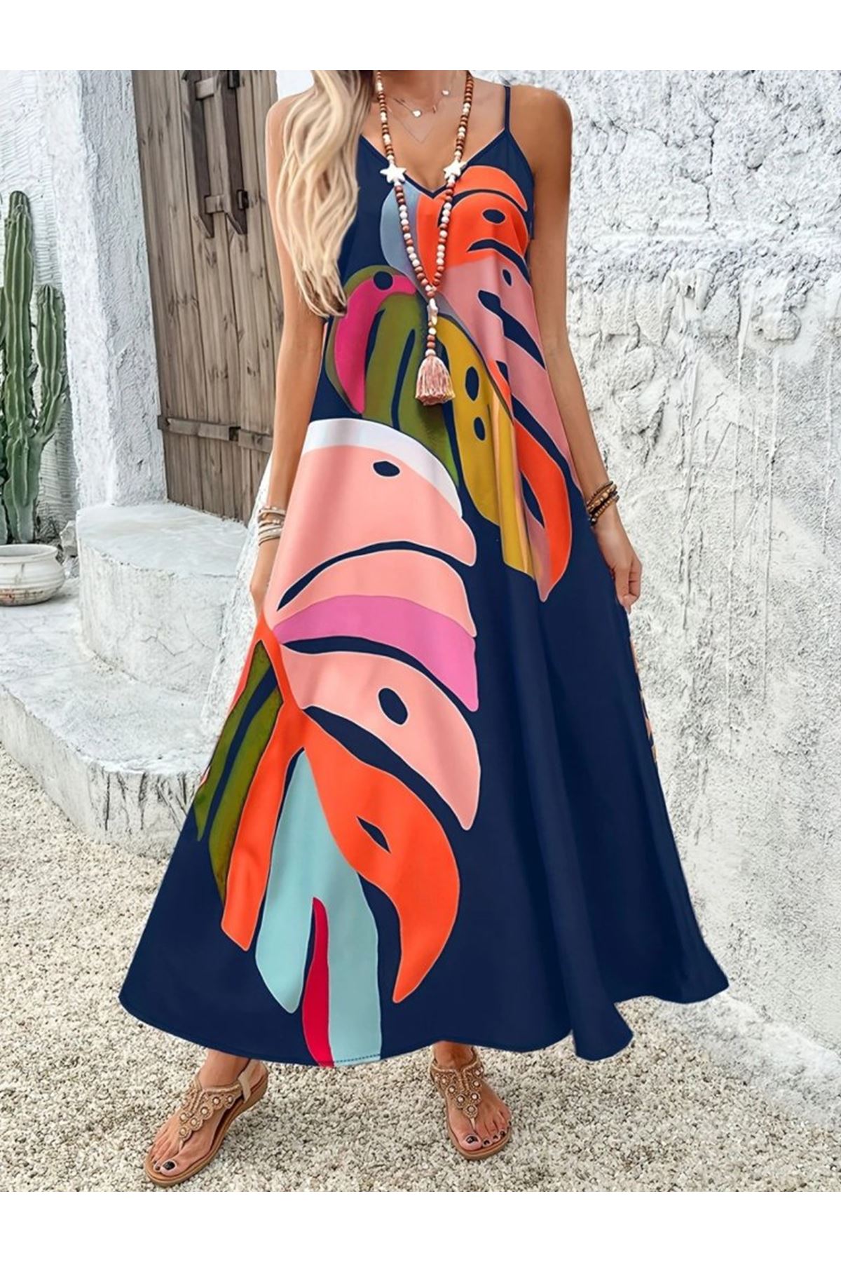 Kadın Ip Askılı V Yakalı Desenli Süprem Maxi Elbise