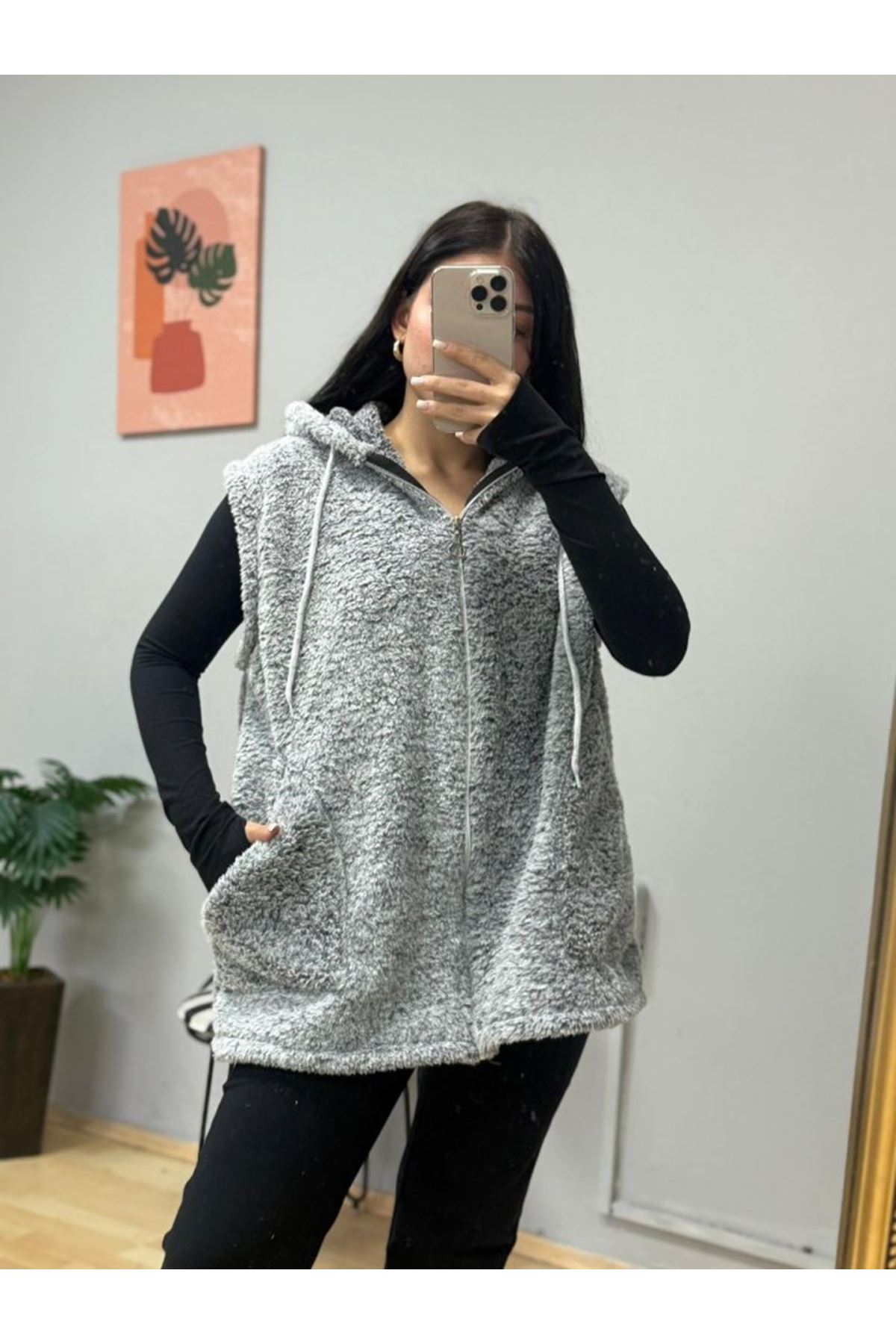 Kadın Kapüşon Ve Fermuar Detay Welsoft Kolsuz Yelek