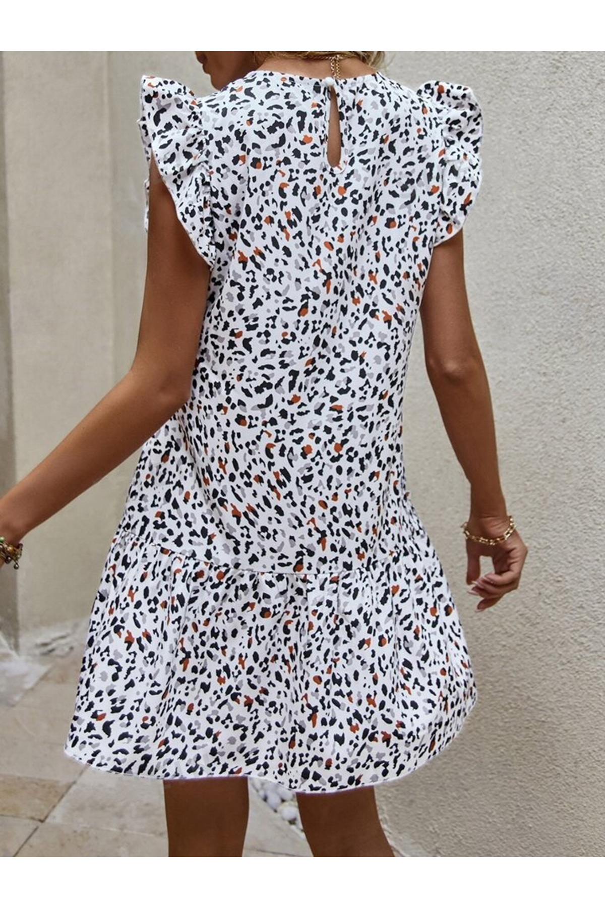 Kadın Kısa Kollu Bisiklet Yaka Etek Ucu Volanlı Kısa Dokuma Elbise