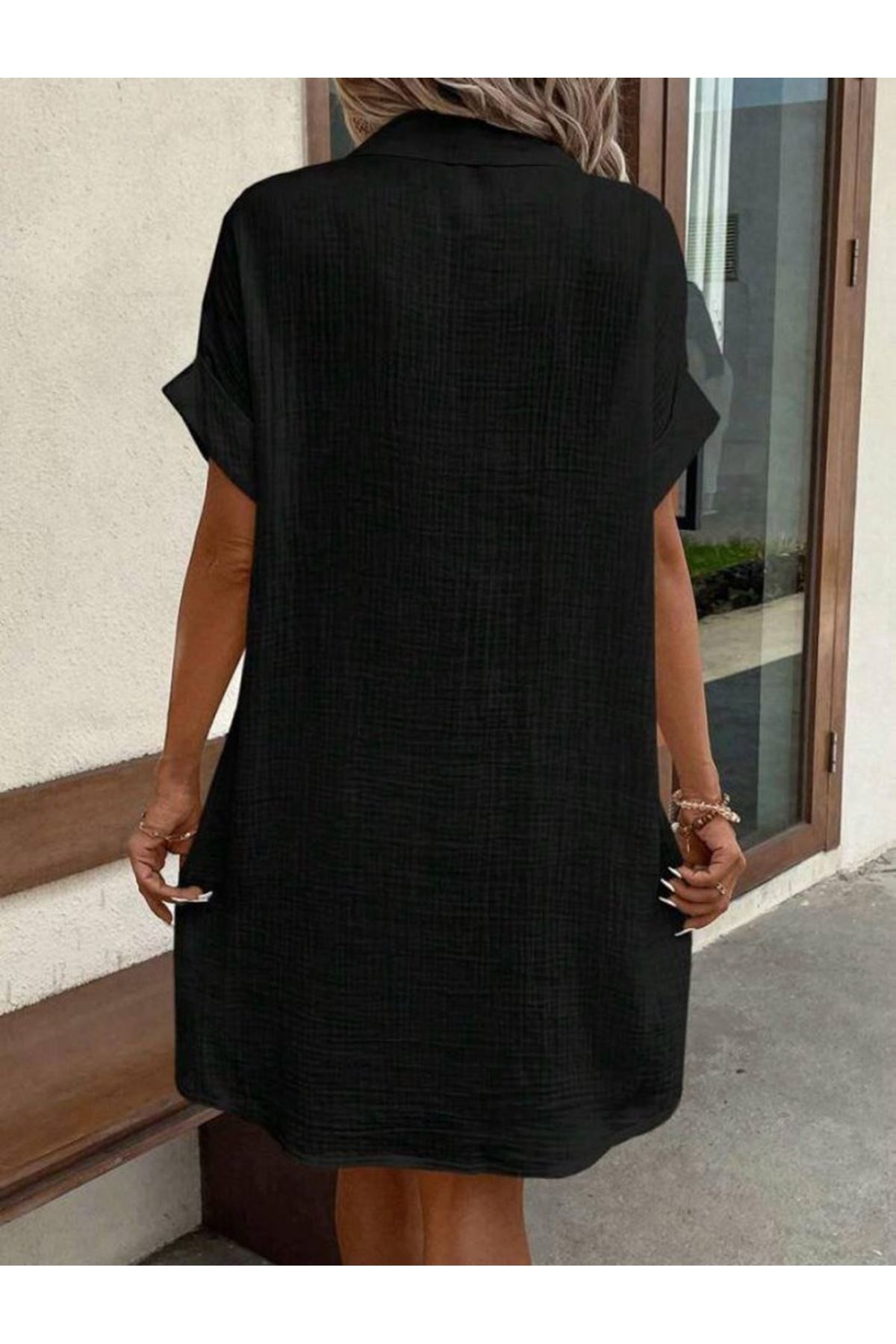 Kadın Kısa Kollu Bisiklet Yaka Yandan Yırtmaçlı Viskon Midi Elbise