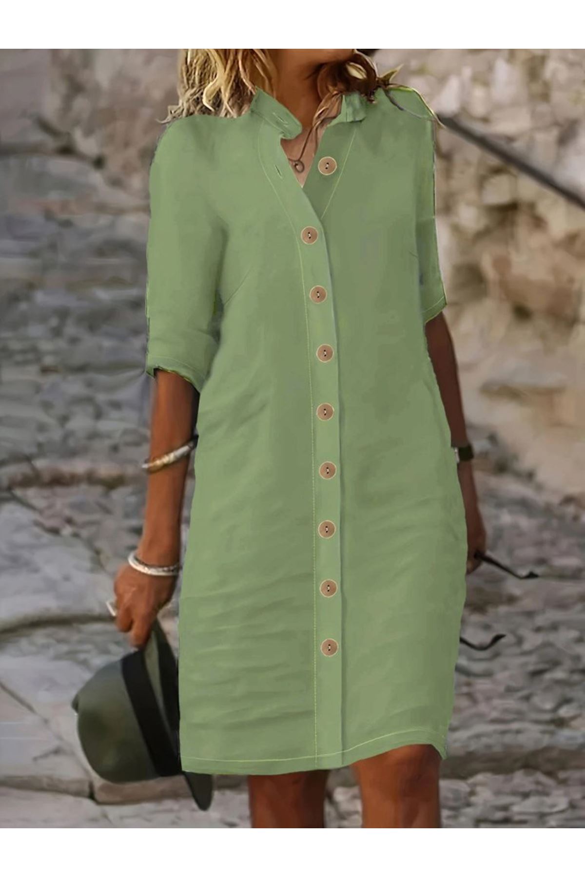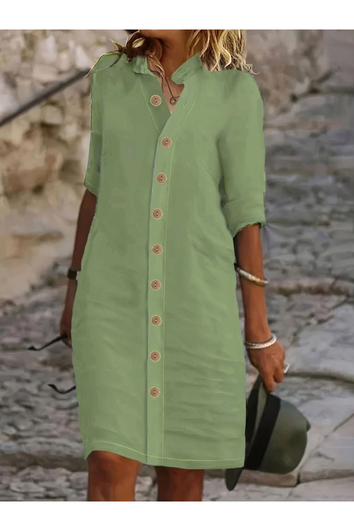 Kadın Kısa Kollu Hakim Yaka önden Düğmeli Kısa Müslim Elbise
