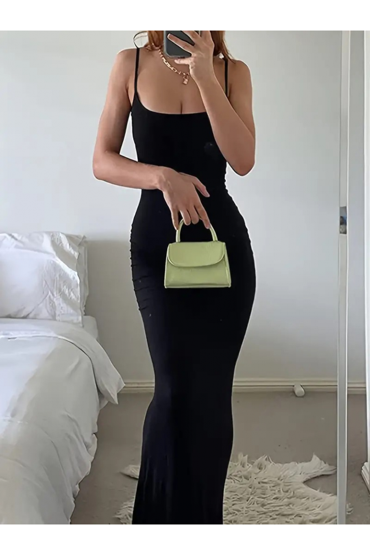 Kadın Kolsuz Askılı Bodycon Uzun Viskon Elbise