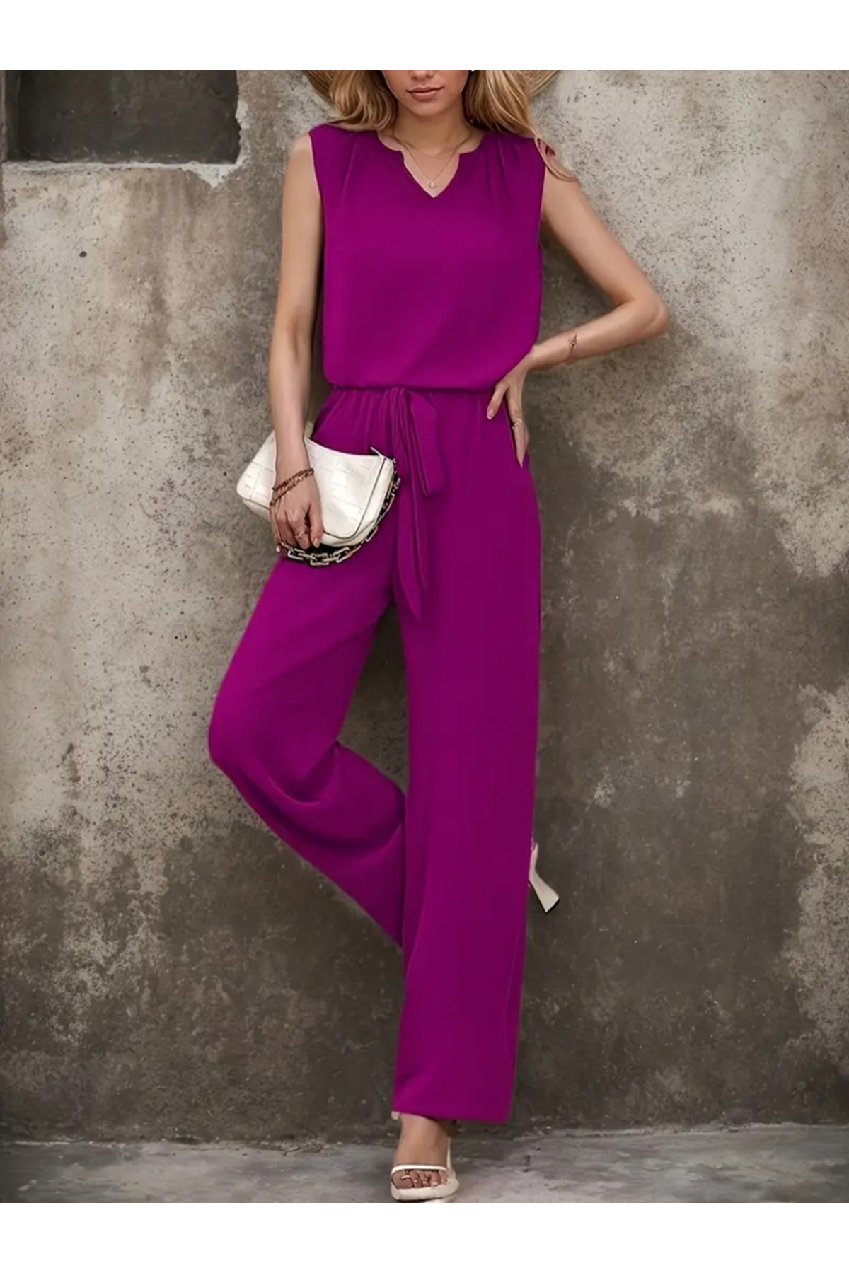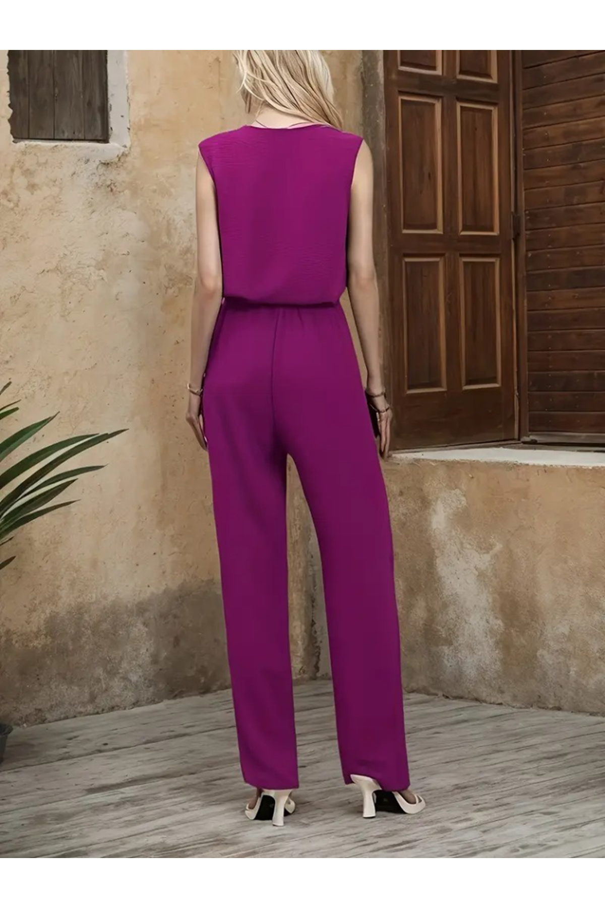 Kadın Kolsuz V Yakalı Aerobin Bluz Ve Belden Kuşaklı Pantolon Ikili Takım