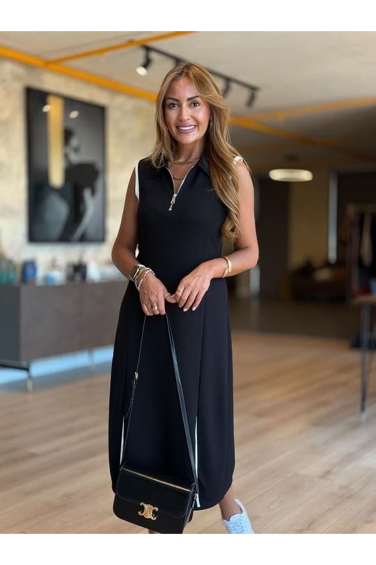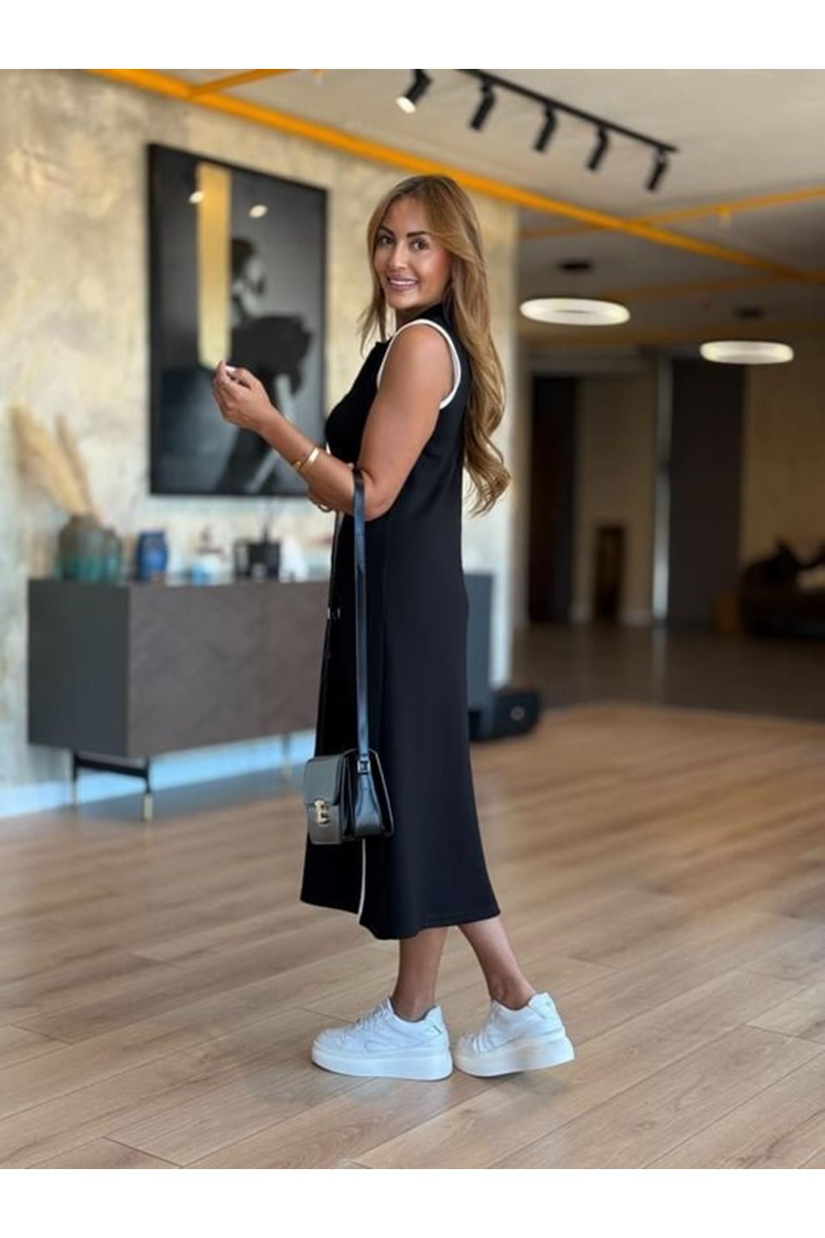 Kadın Modal Kumaş Fermuarlı Kolsuz Midi Boy Elbise