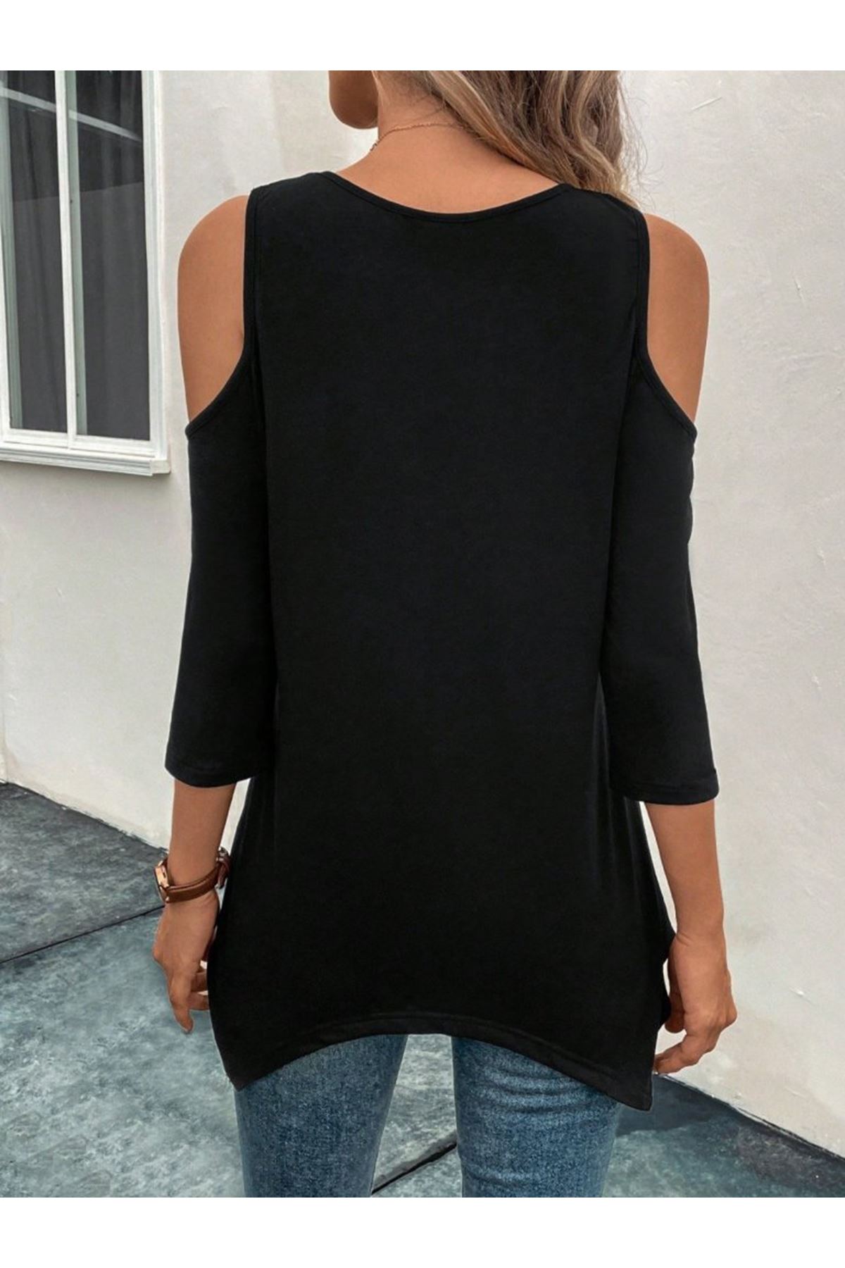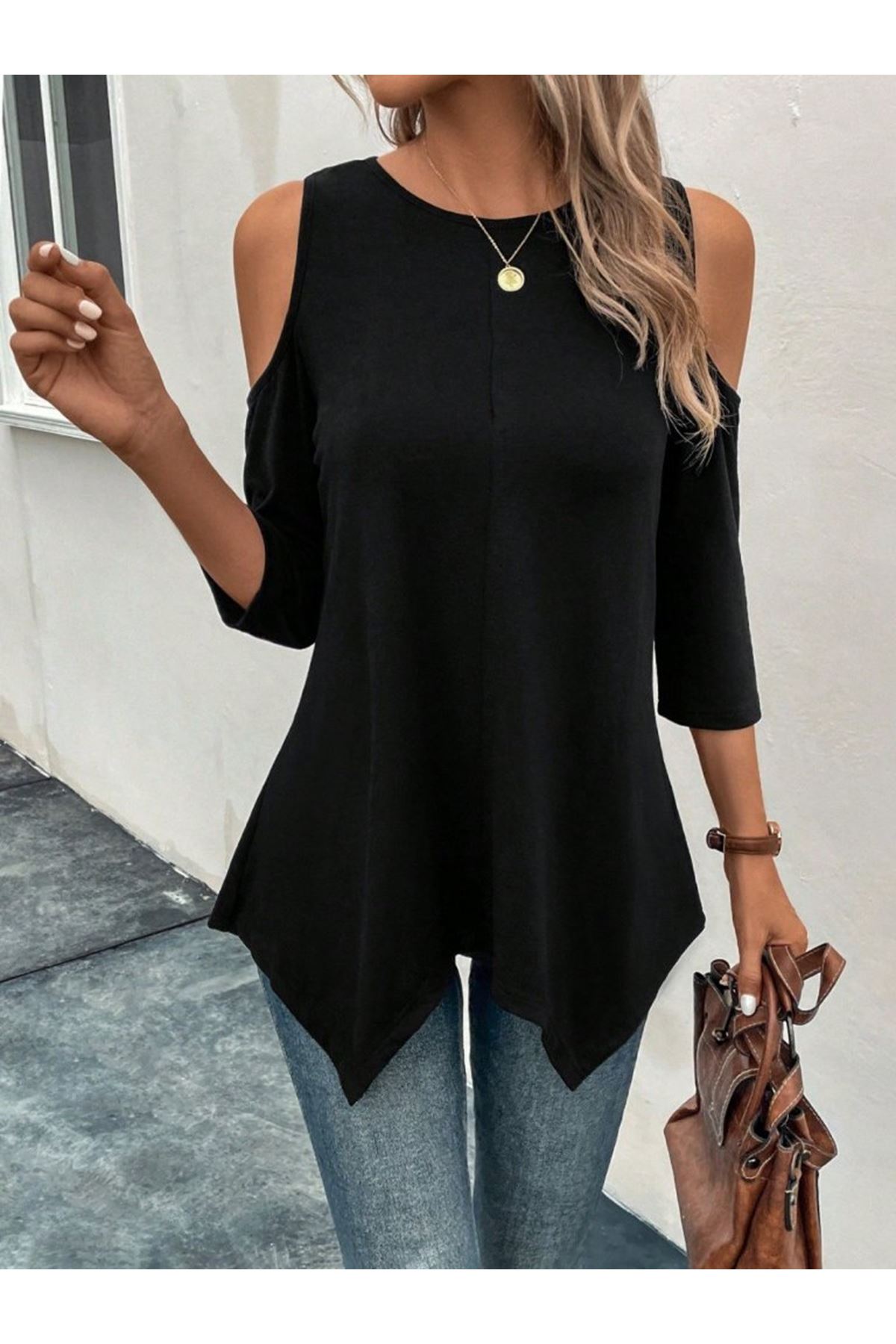 Kadın Omuzlardan Açık Sıfır Yaka Asimetrik Kesim Detay Viskon Bluz