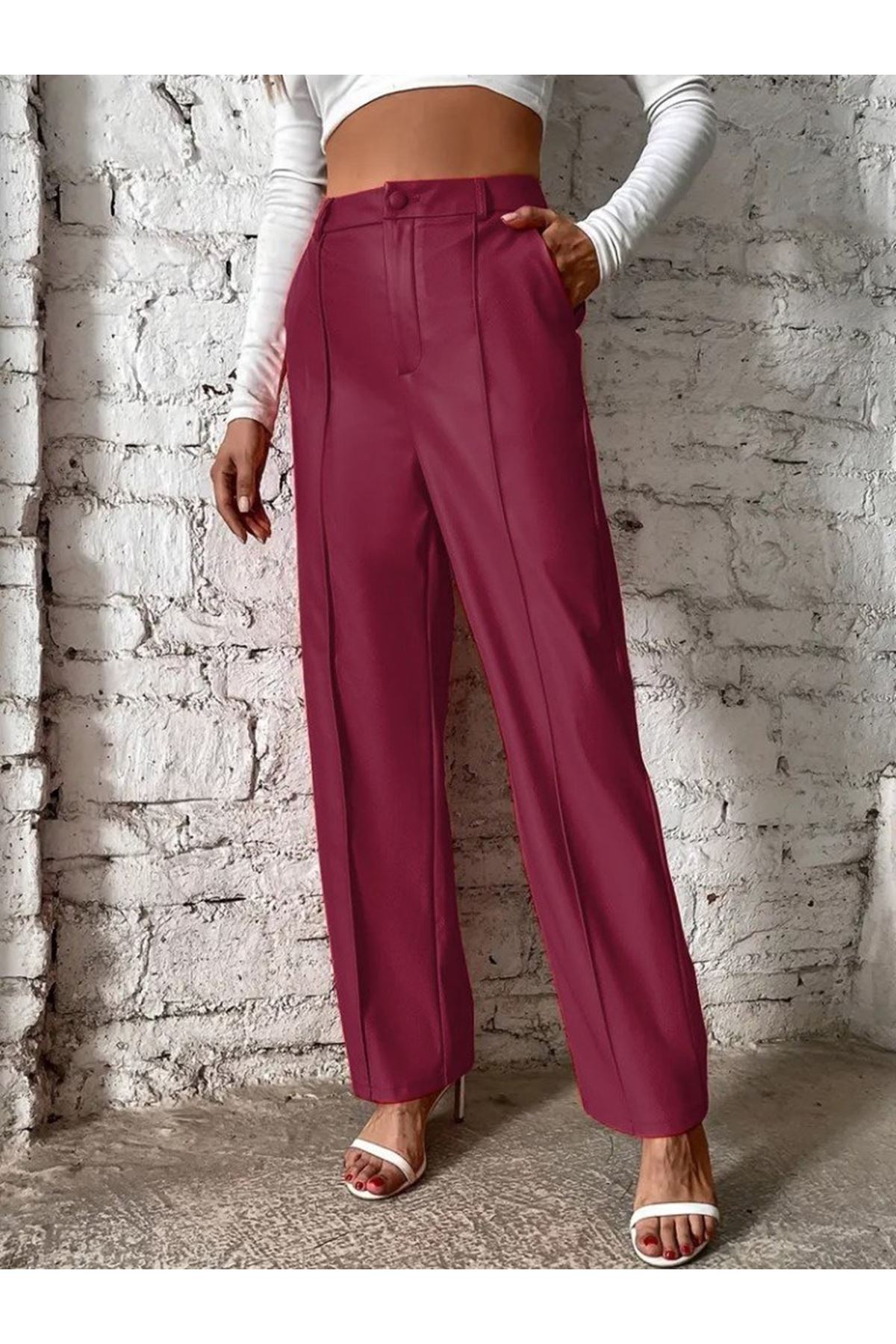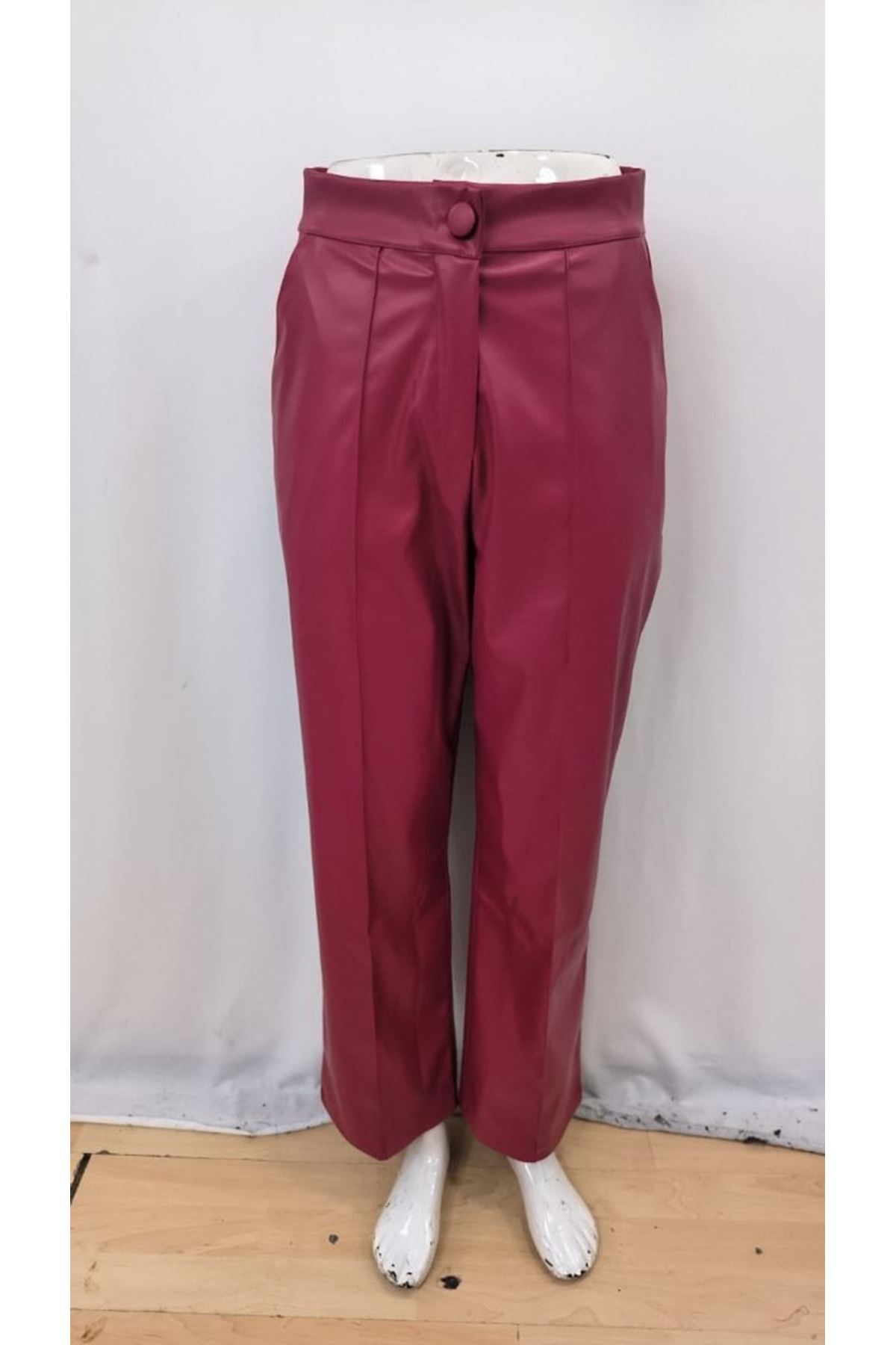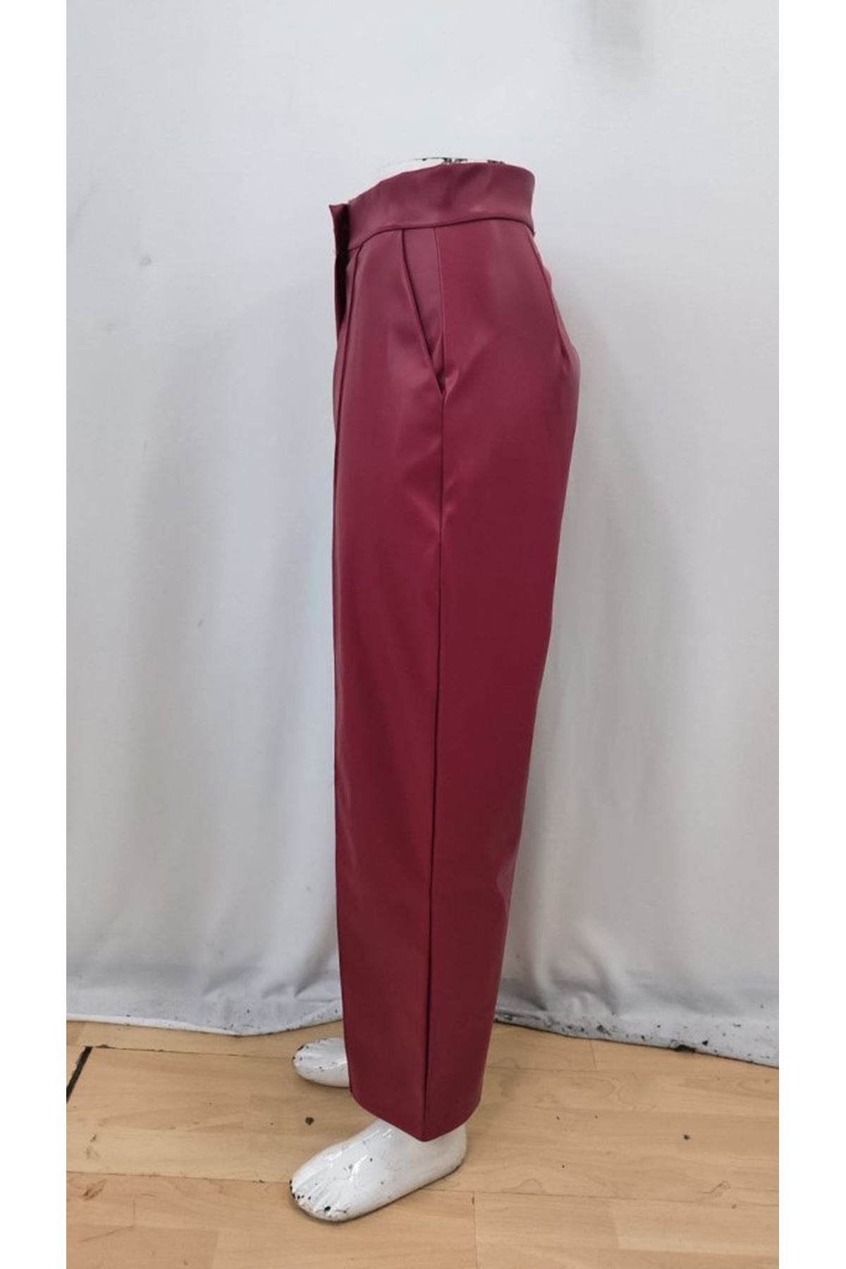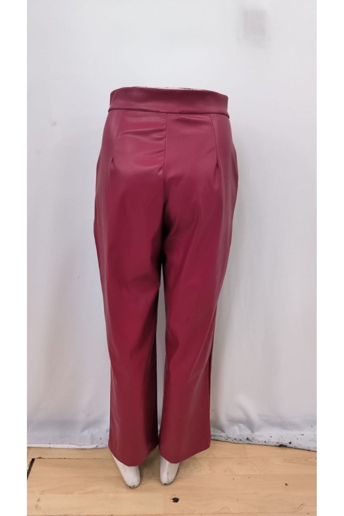 Kadın önden Fermuarlı Cepli Geniş Kesim Lame Deri Pantolon