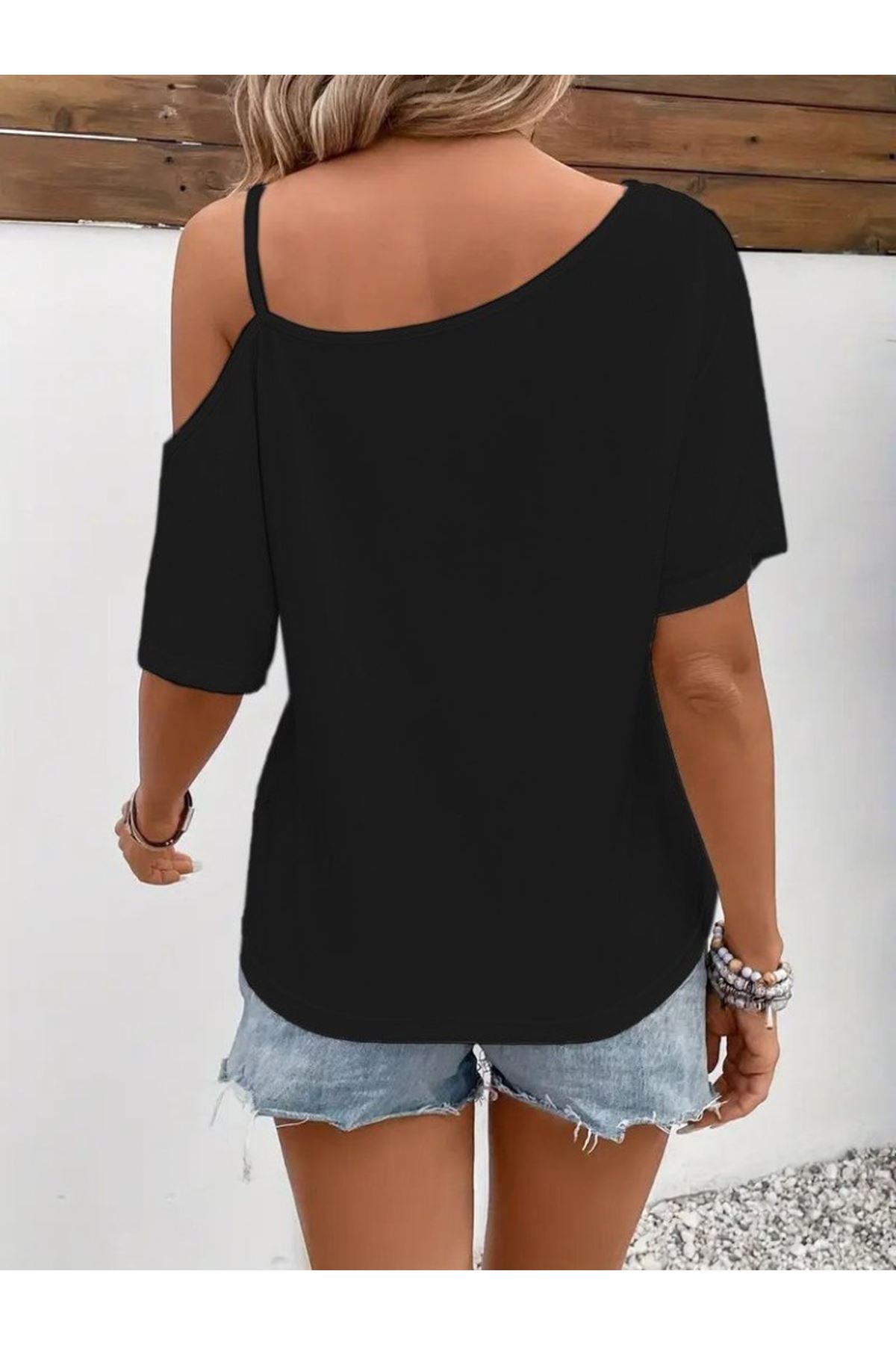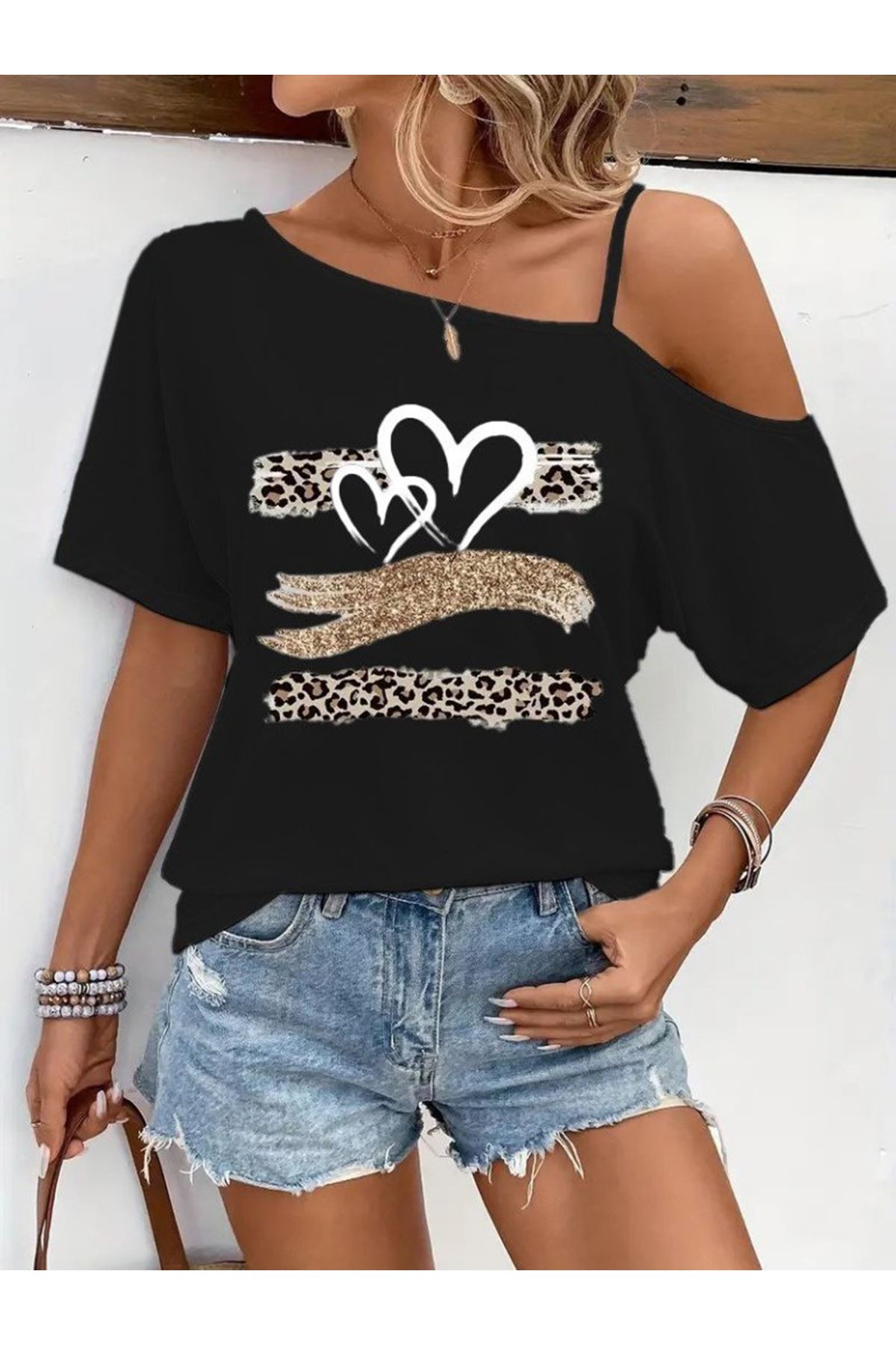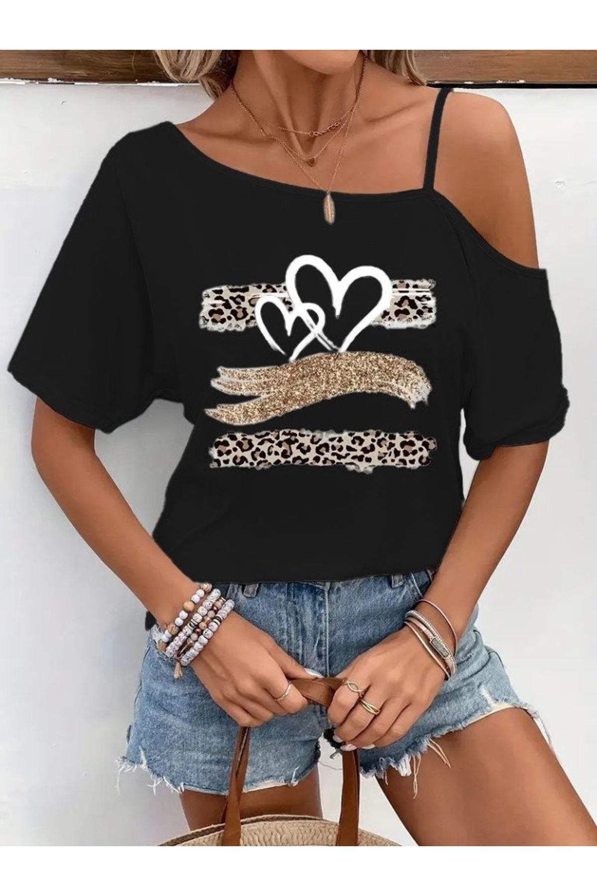 Kadın Tek Omuzu Açık Ip Askılı Baskılı Viskon Bluz