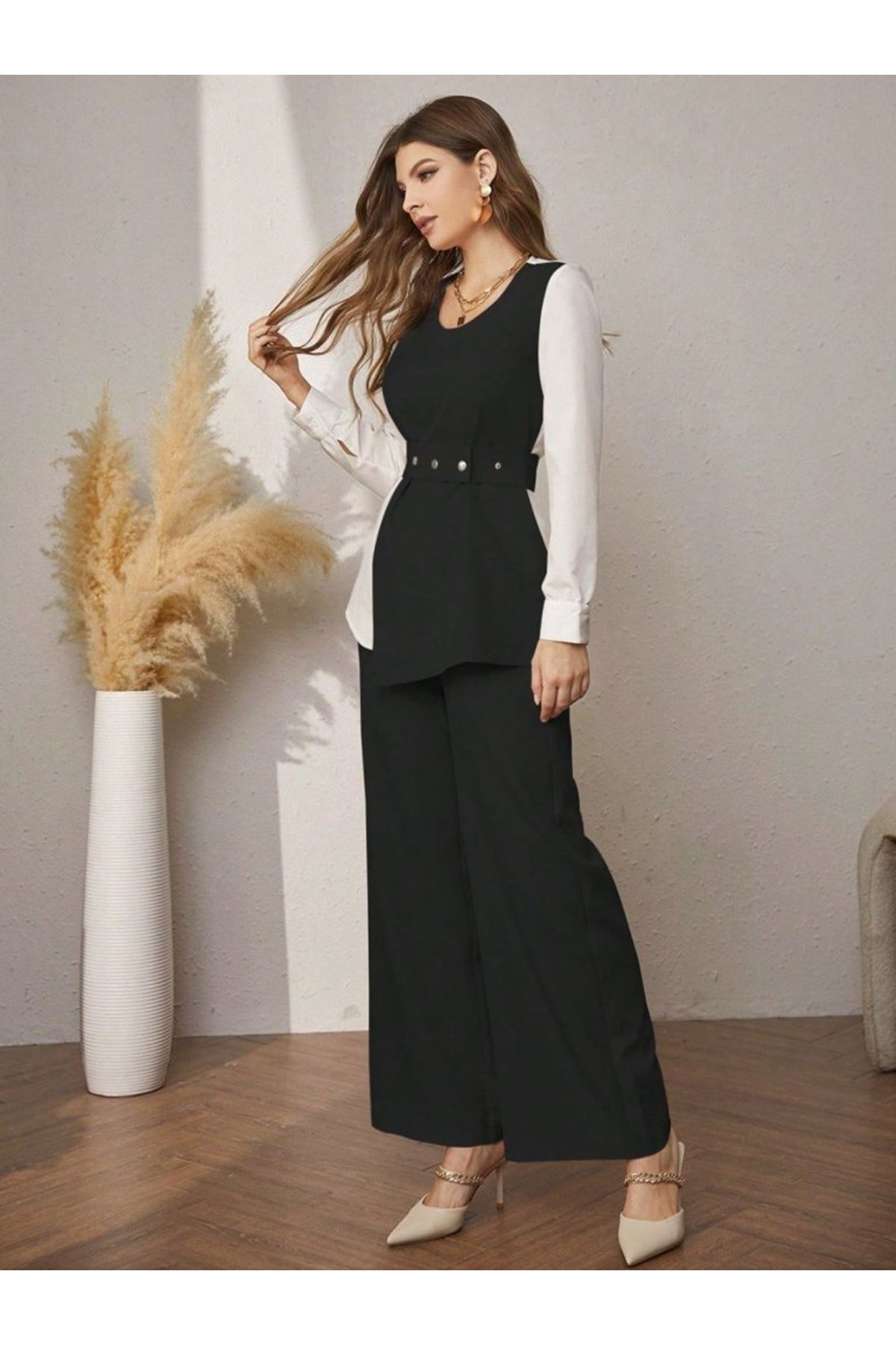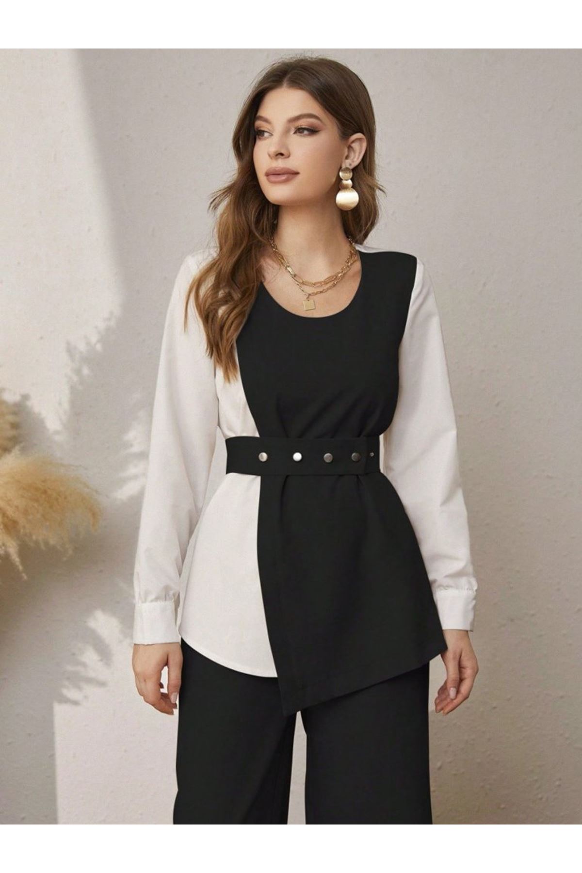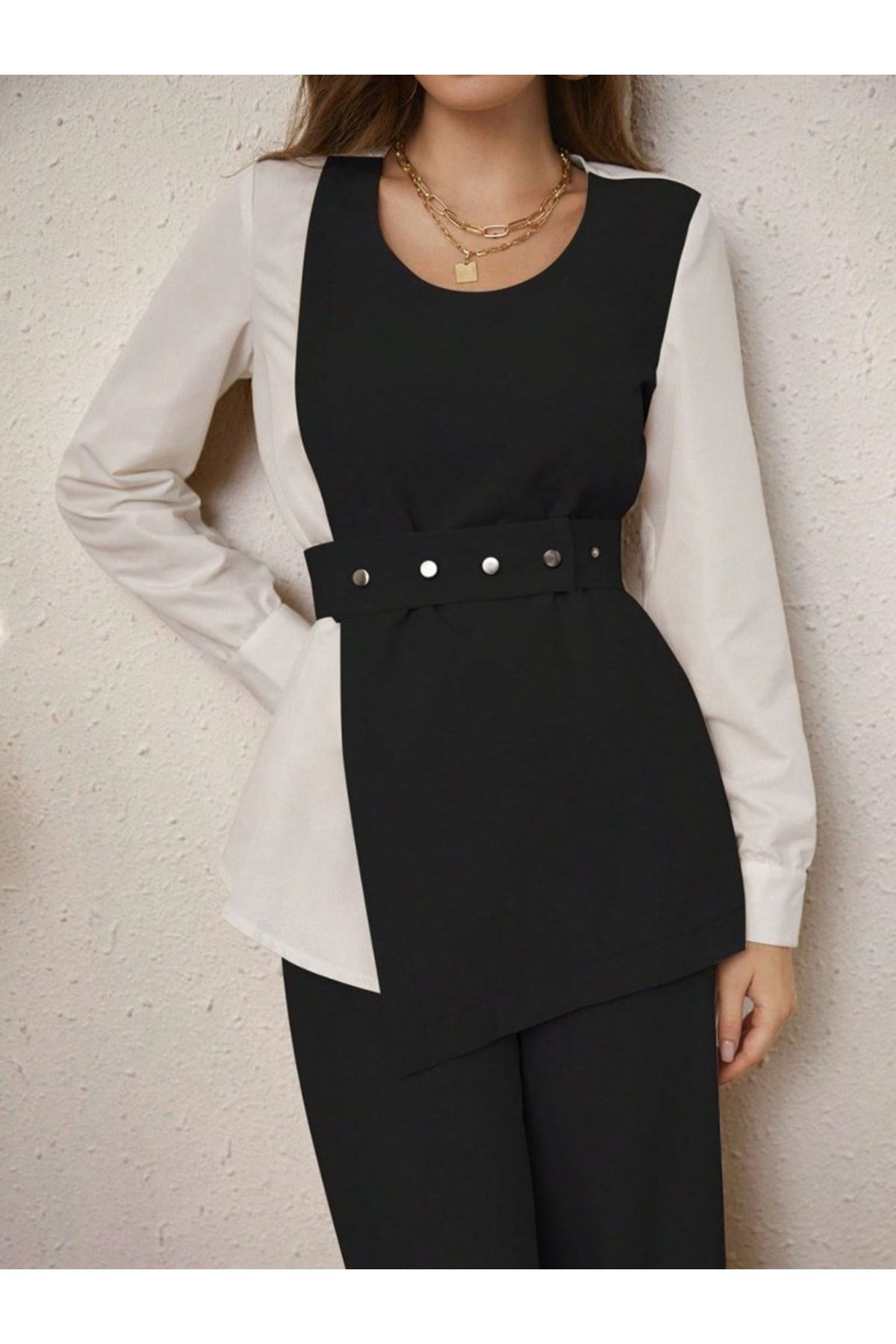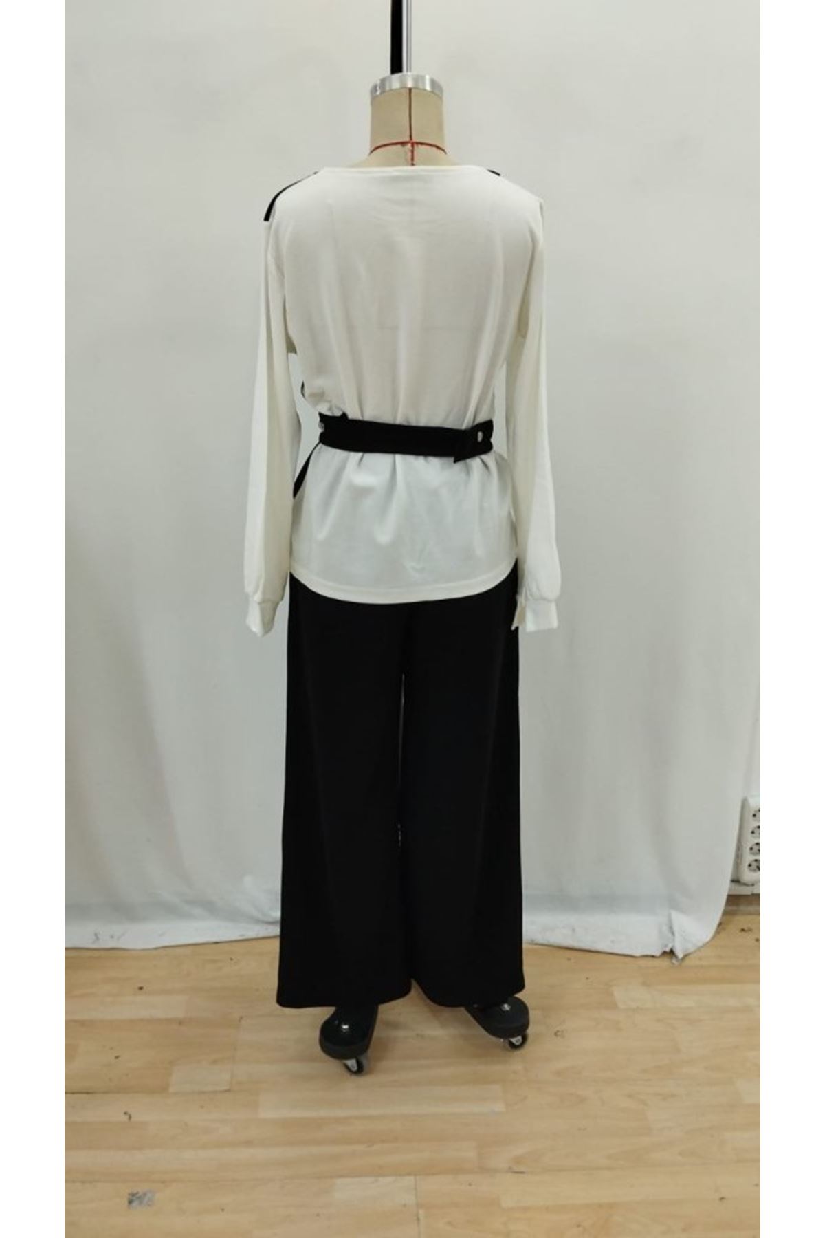 Kadın Uzun Kollu Açık Yakalı çift Renkli Kemerli Ithal Krep Ikili Takım