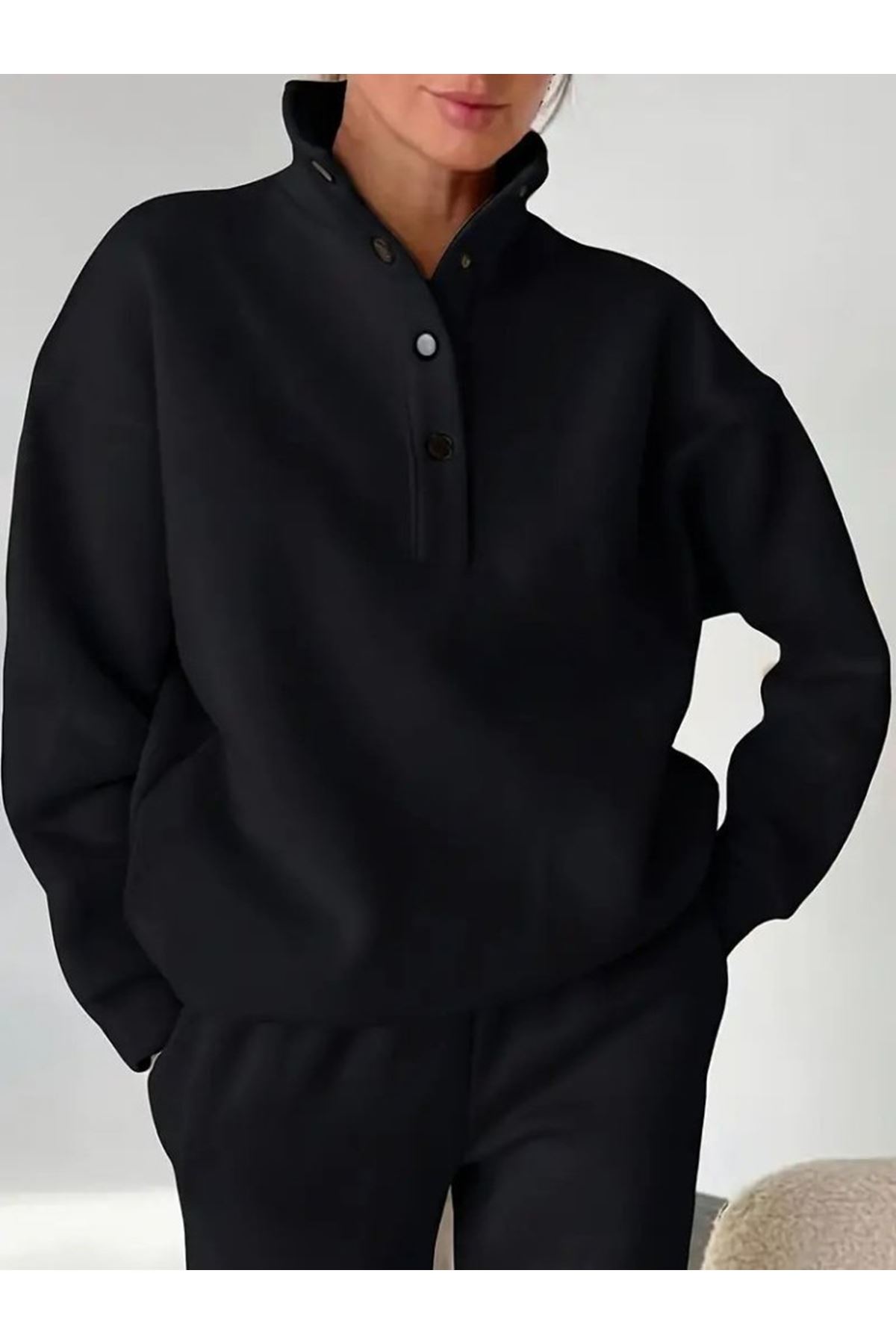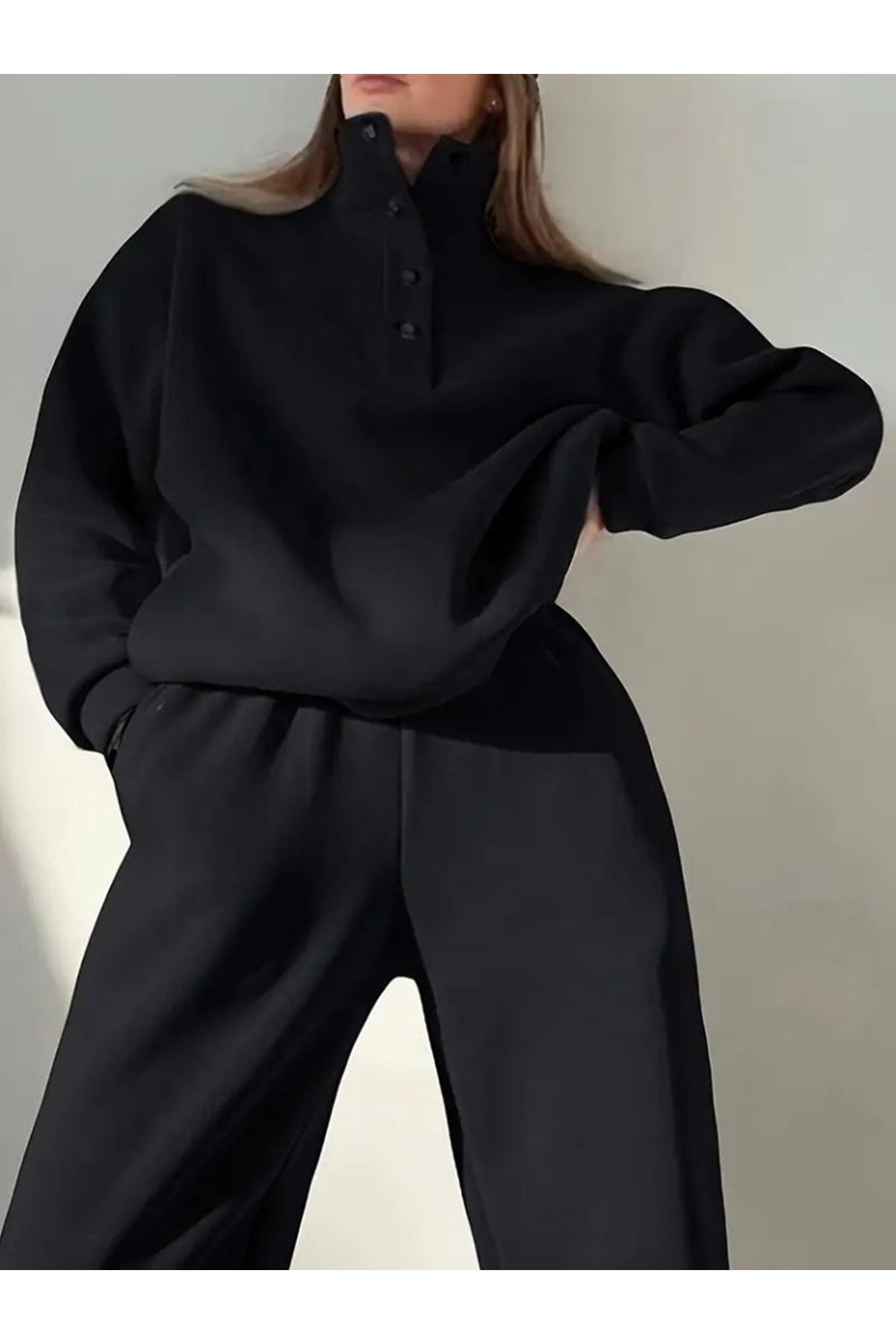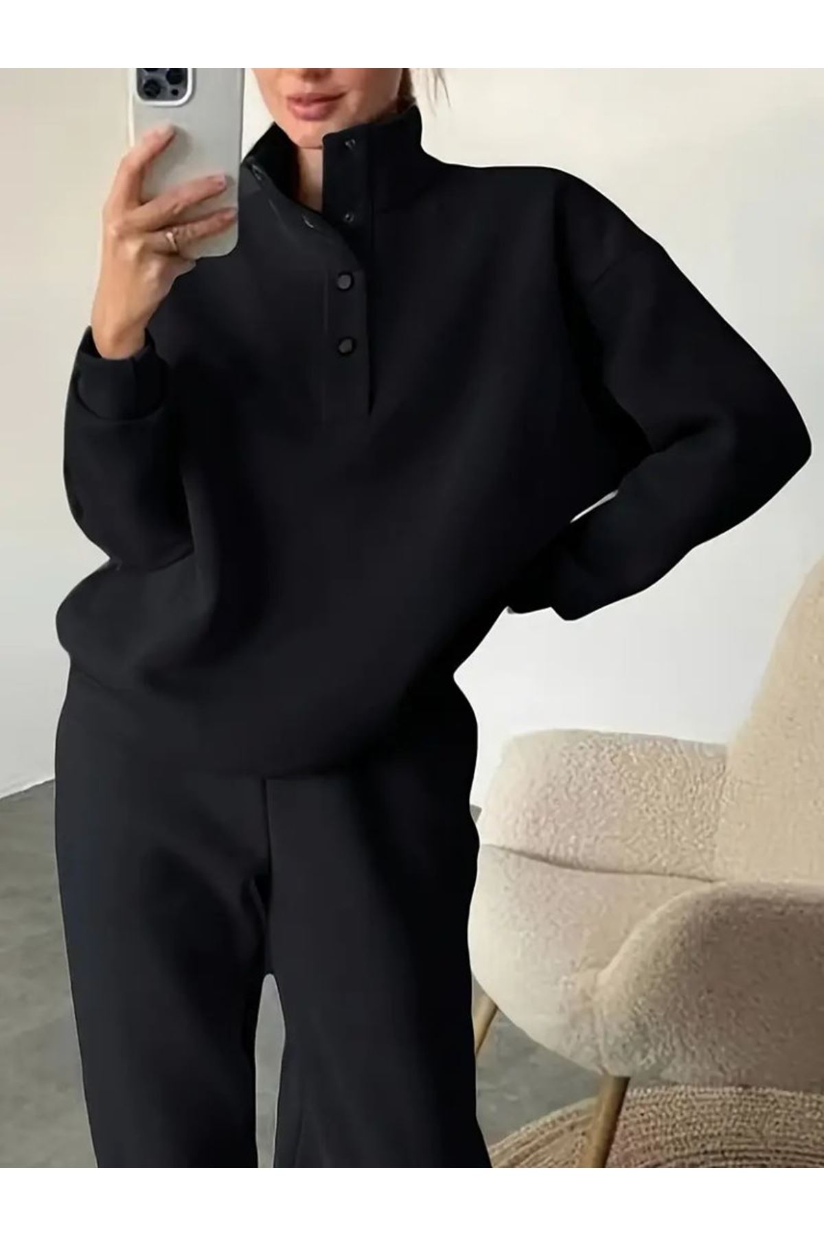 Kadın Uzun Kollu Balıkçı Dik Yakalı Düğmeli üç Iplik Bluz Ve Pantolon Ikili Takım