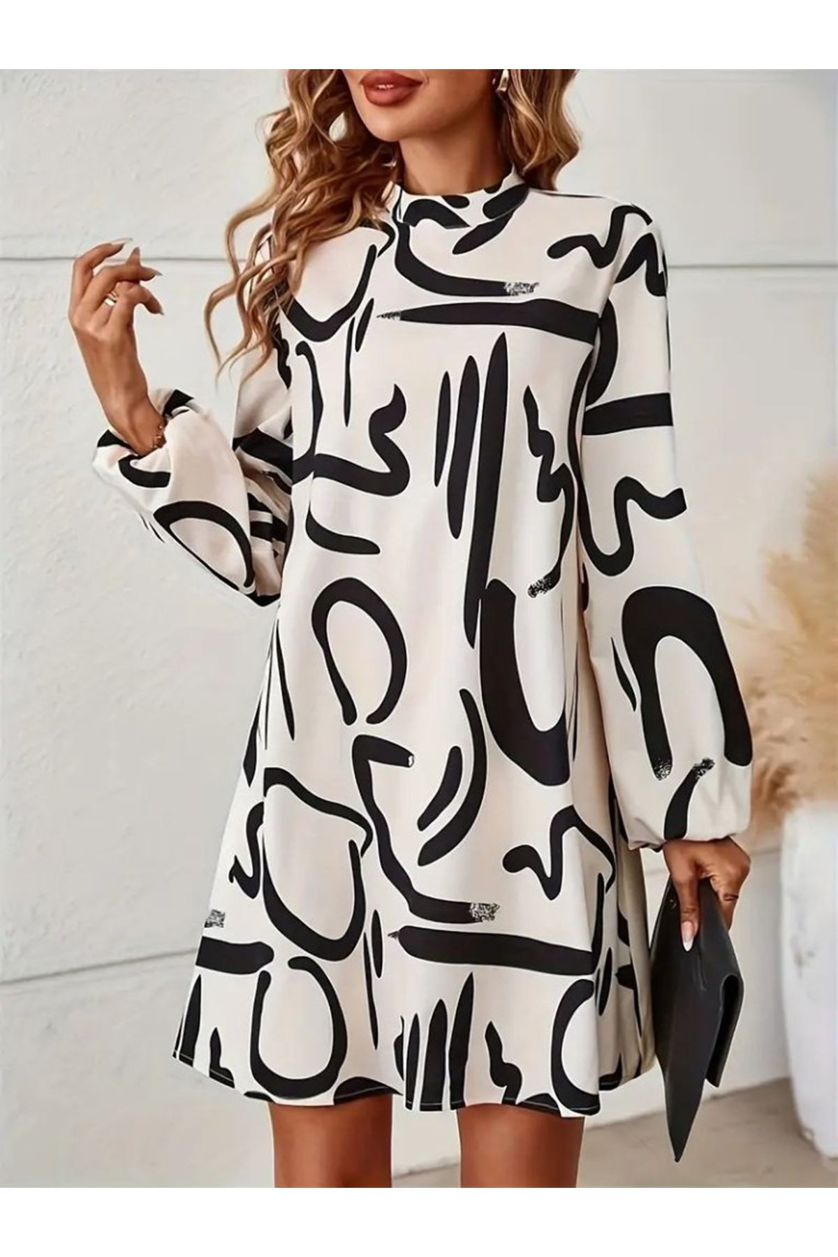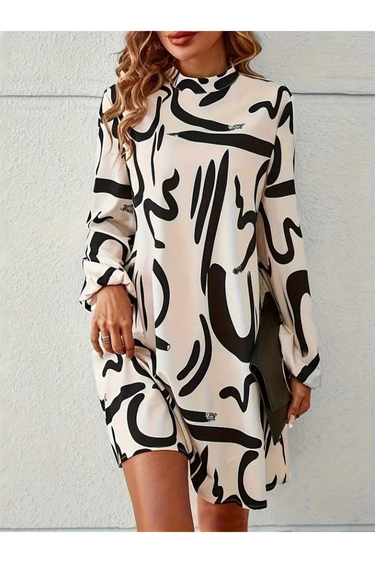 Kadın Uzun Kollu Balıkçı Yaka Desenli şardonlu Dalgıç Elbise