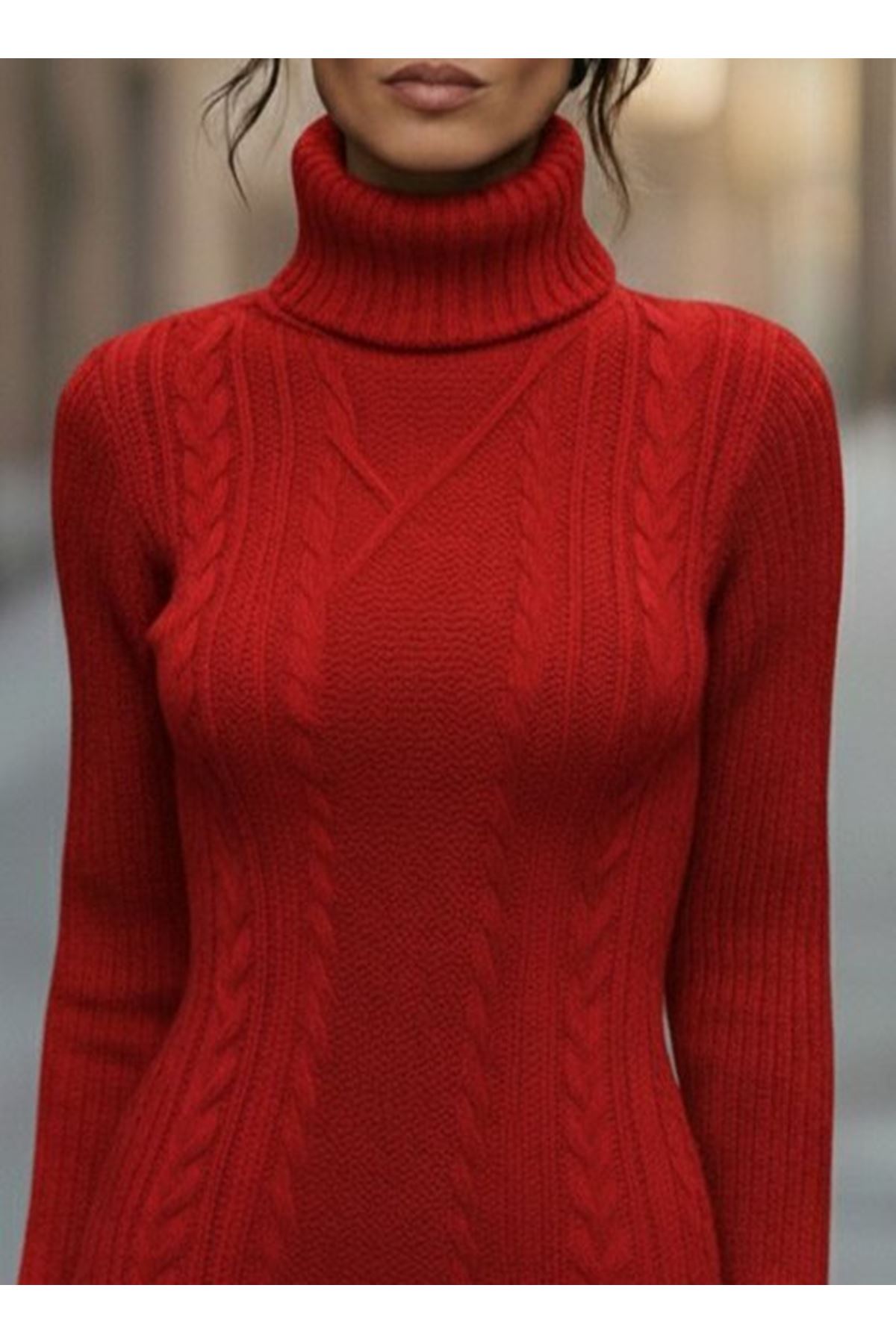 Kadın Uzun Kollu Balıkçı Yaka Kısa Triko Elbise