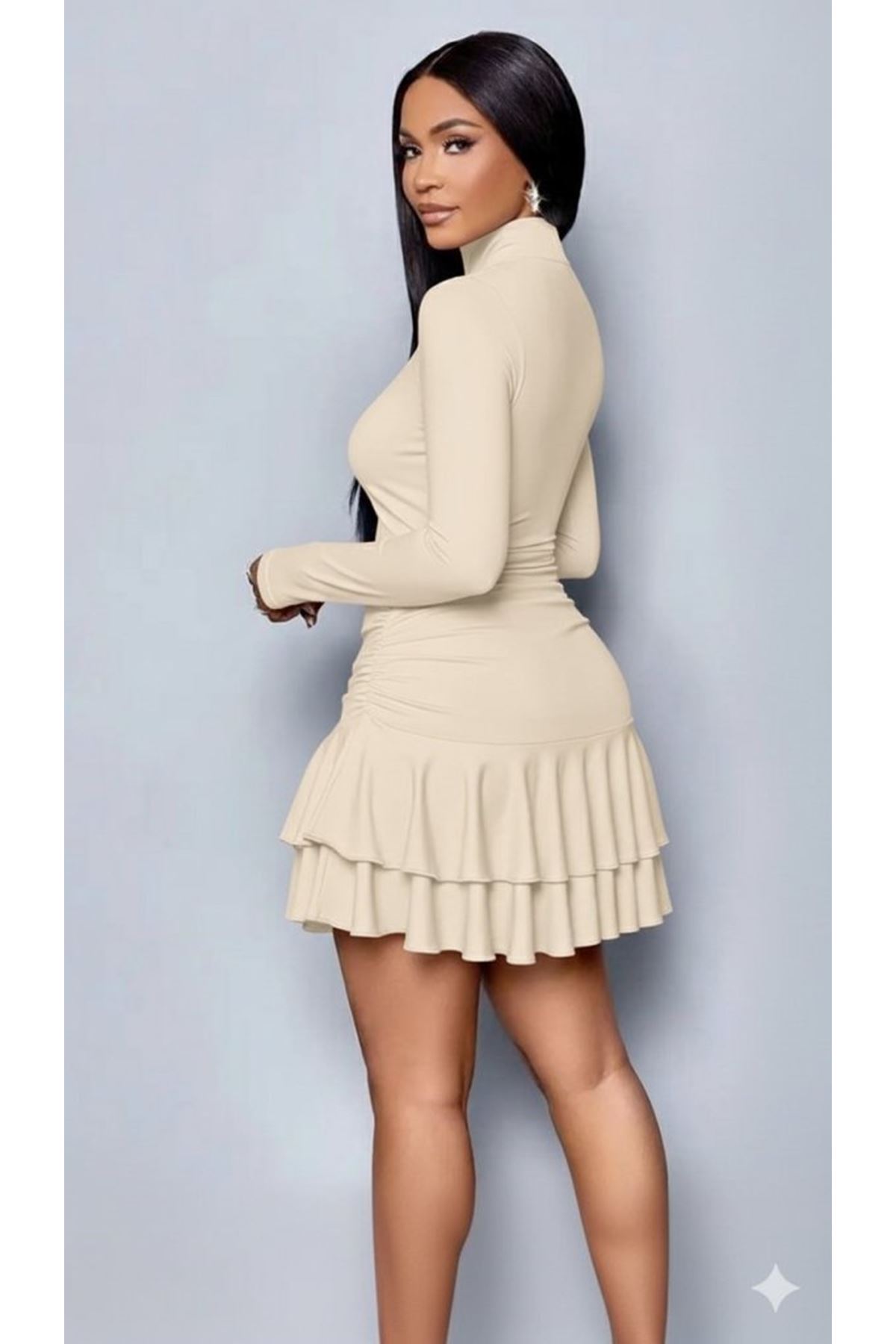 Kadın Uzun Kollu Balıkçı Yaka Mini Fırfırlı Sandy Elbise