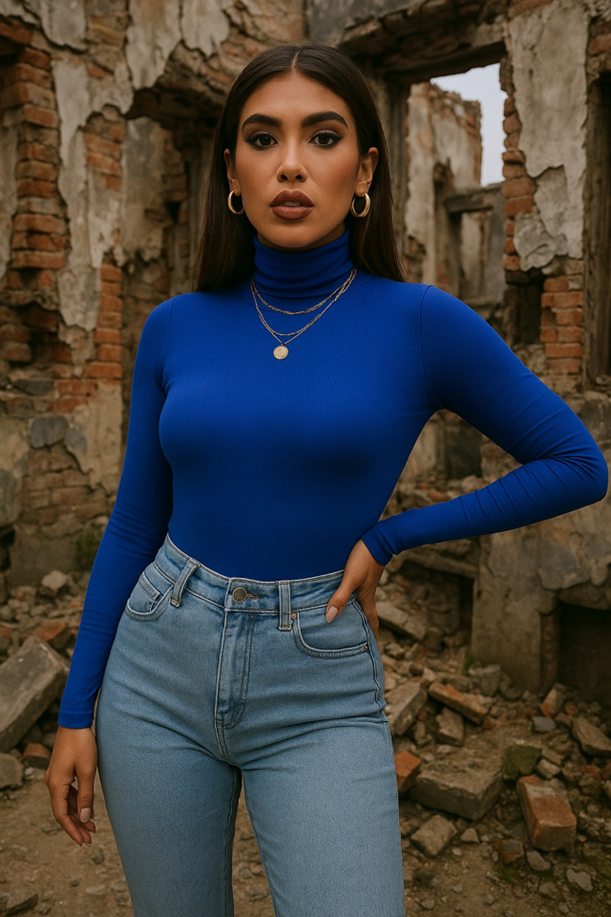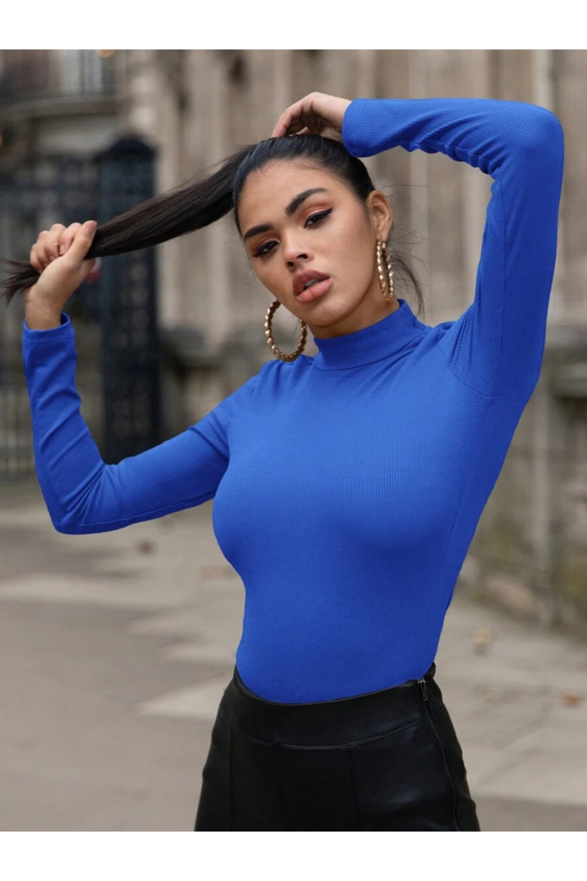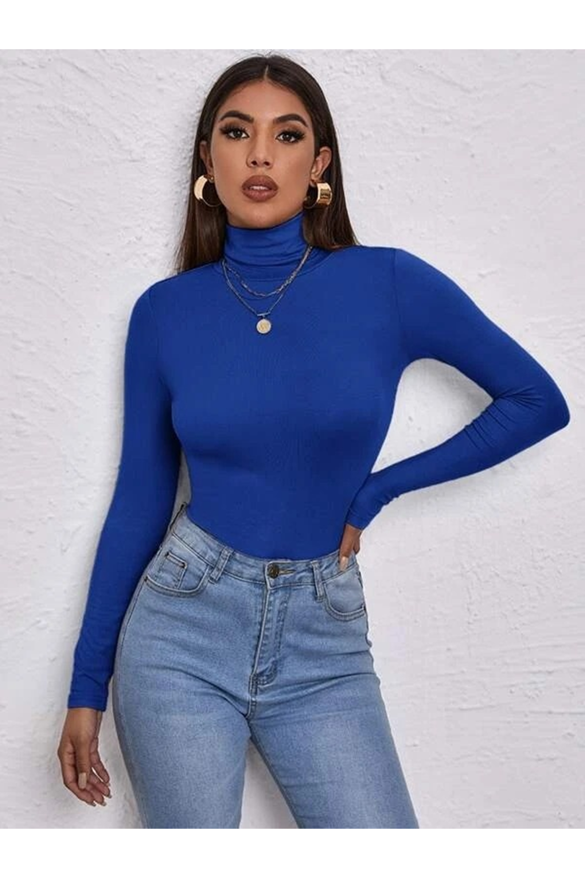 Kadın Uzun Kollu Balıkçı Yaka Viskon Bluz