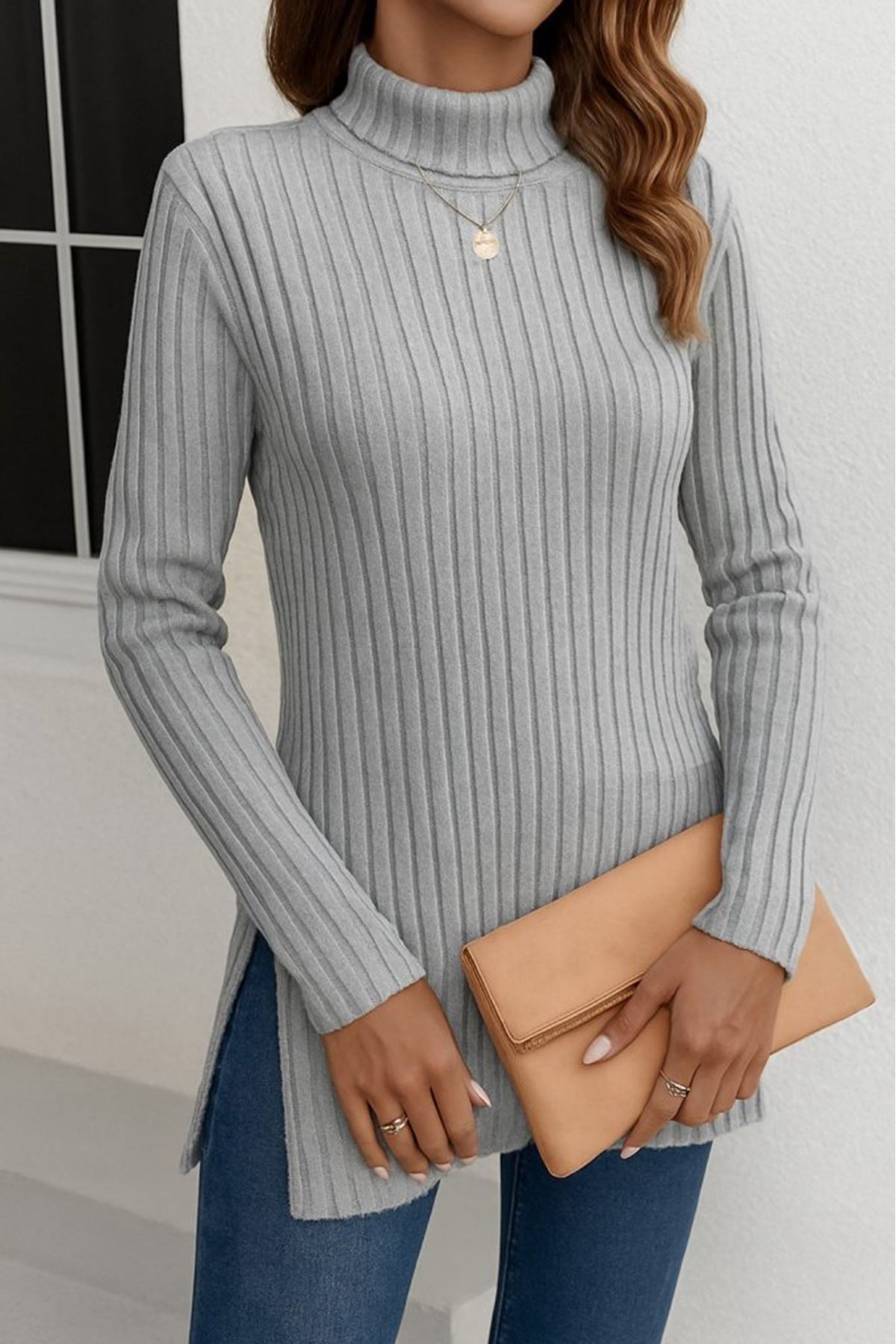Kadın Uzun Kollu Balıkçı Yaka Yandan Yırtmaçlı şardonlu Kaşkorse Bluz