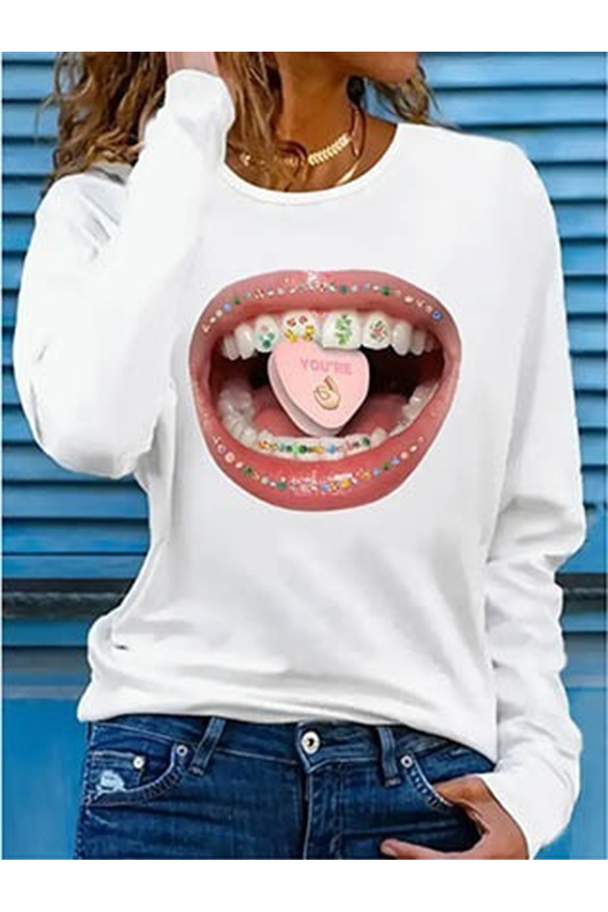 Kadın Uzun Kollu Bisiklet Yaka Baskılı Viskon Bluz