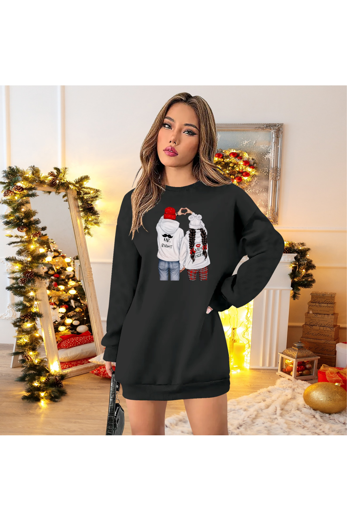 Kadın Uzun Kollu Bisiklet Yaka Desenli Viskon Iki Iplik Elbise
