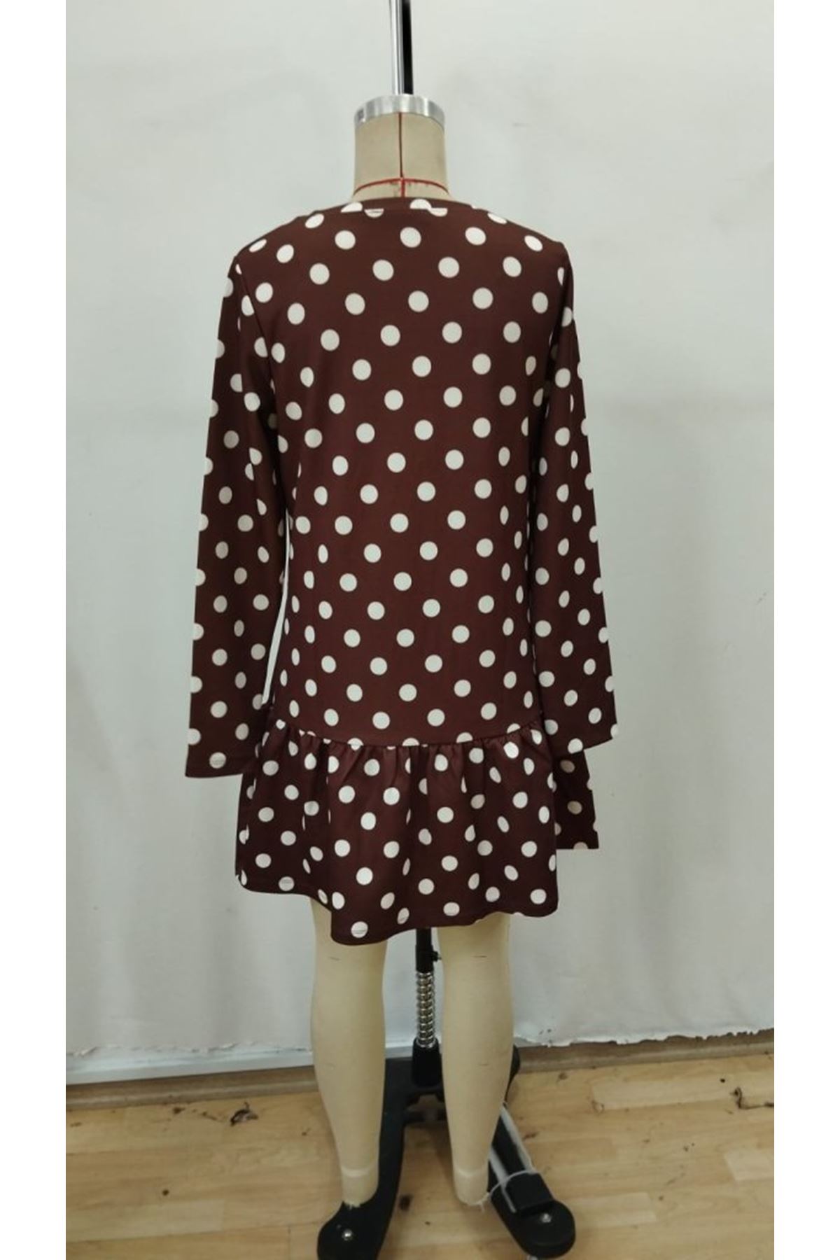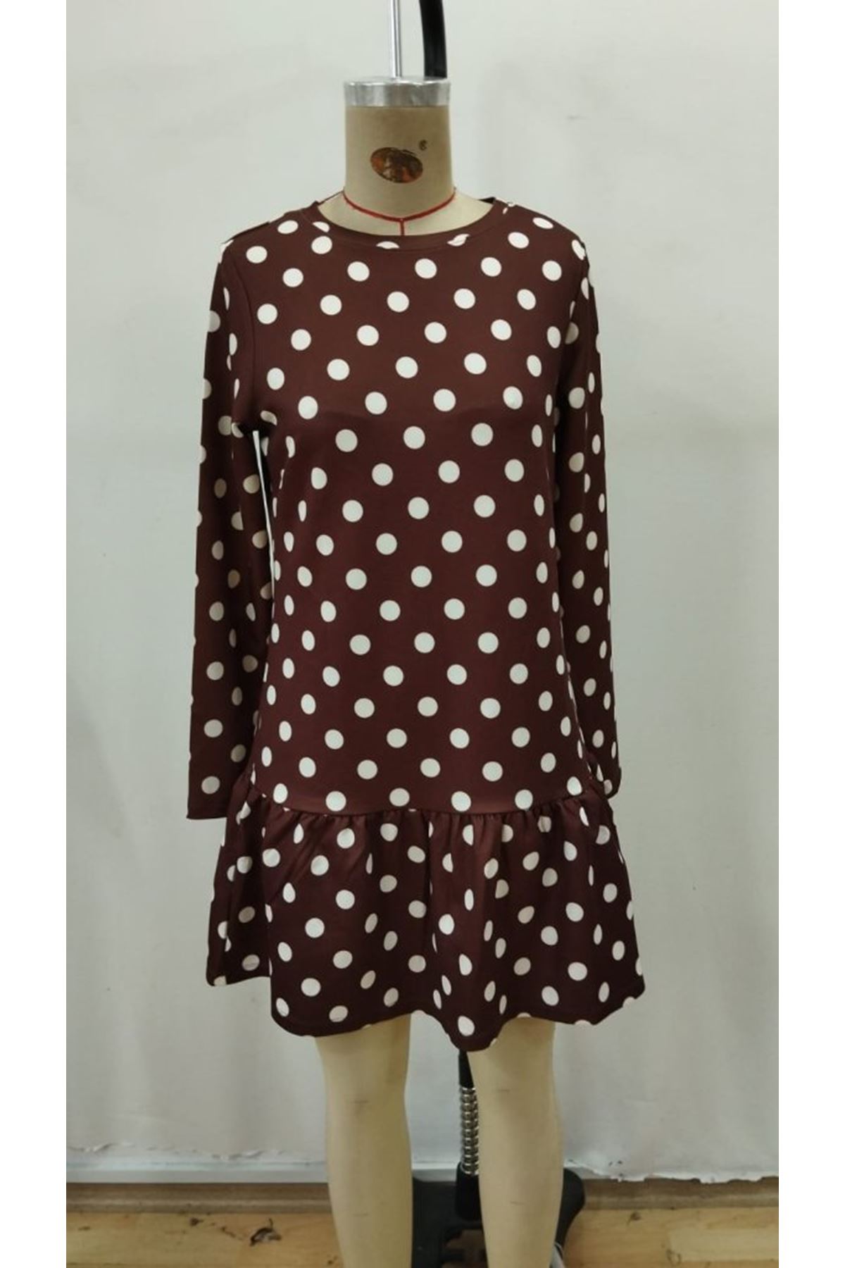 Kadın Uzun Kollu Bisiklet Yaka Fırfırlı Puantiyeli Kısa Modal Elbise