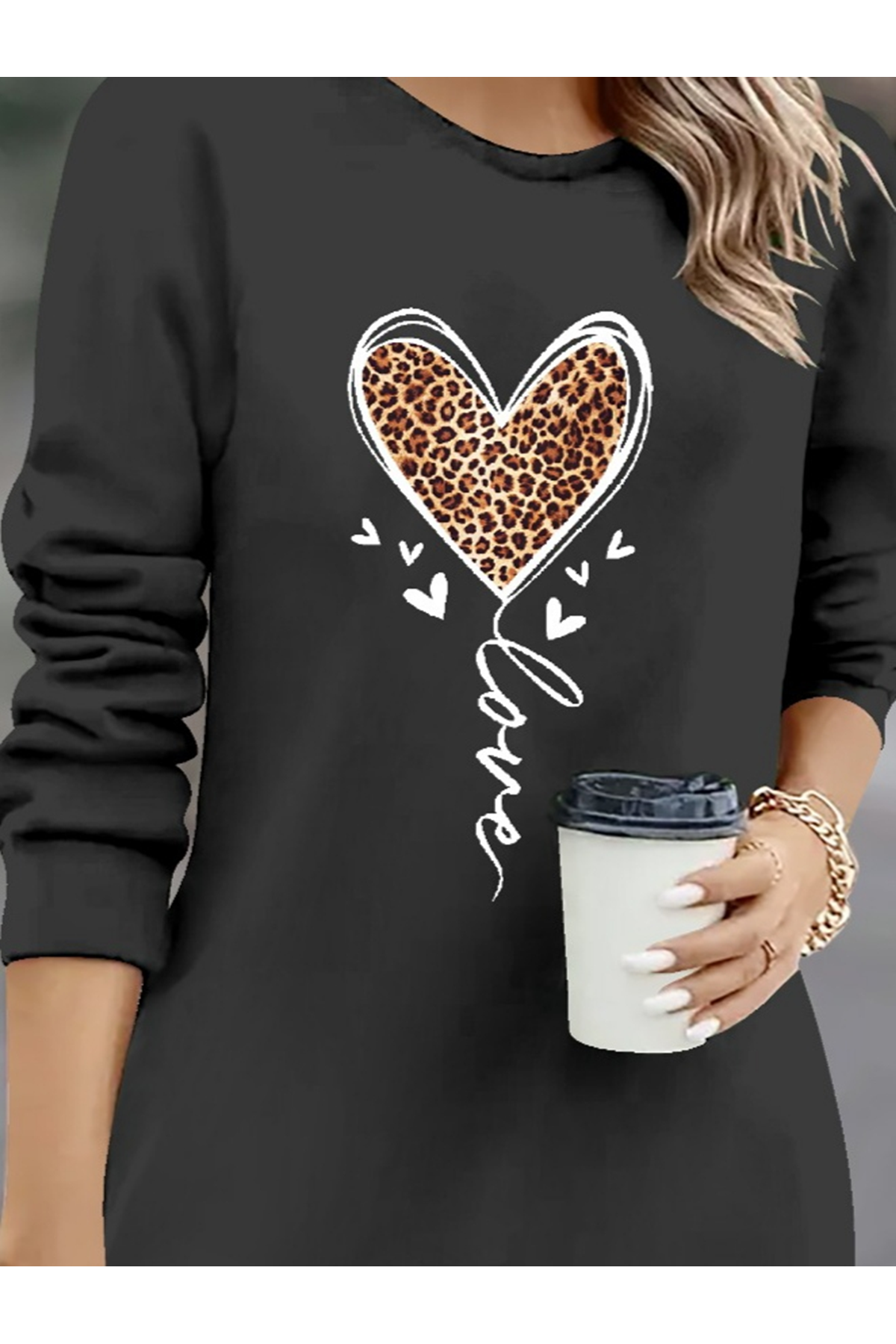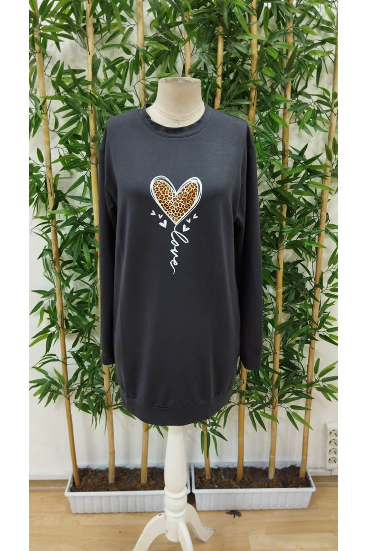 Kadın Uzun Kollu Bisiklet Yaka Kalp Desenli Kısa Viskon Elbise
