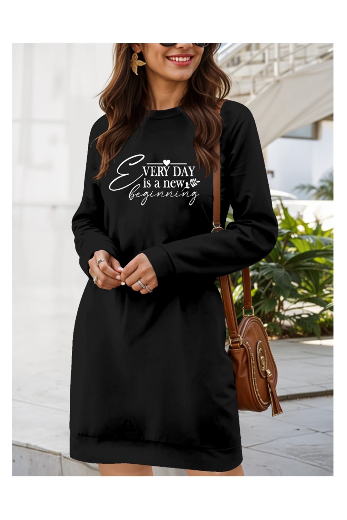 Kadın Uzun Kollu Bisiklet Yaka Kısa Viskon Iki Iplik Elbise