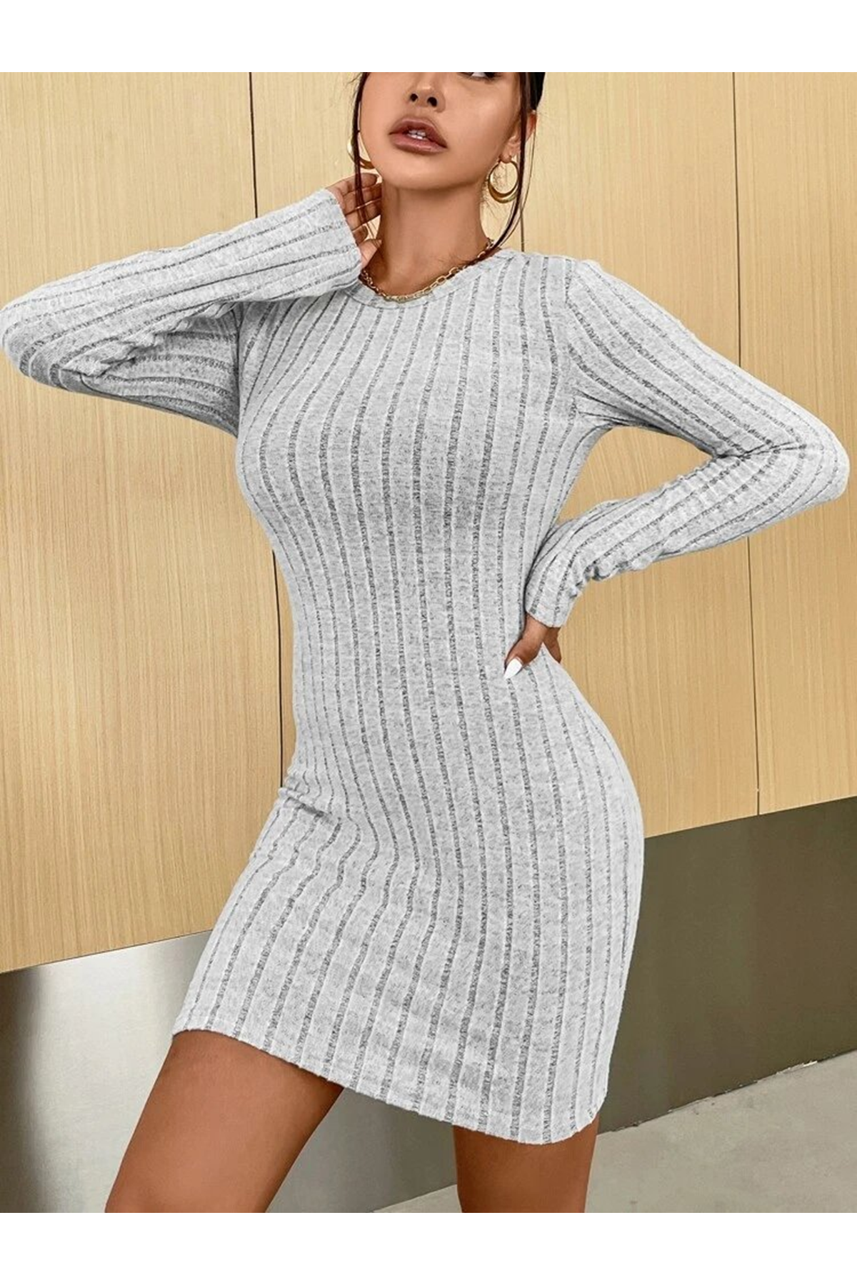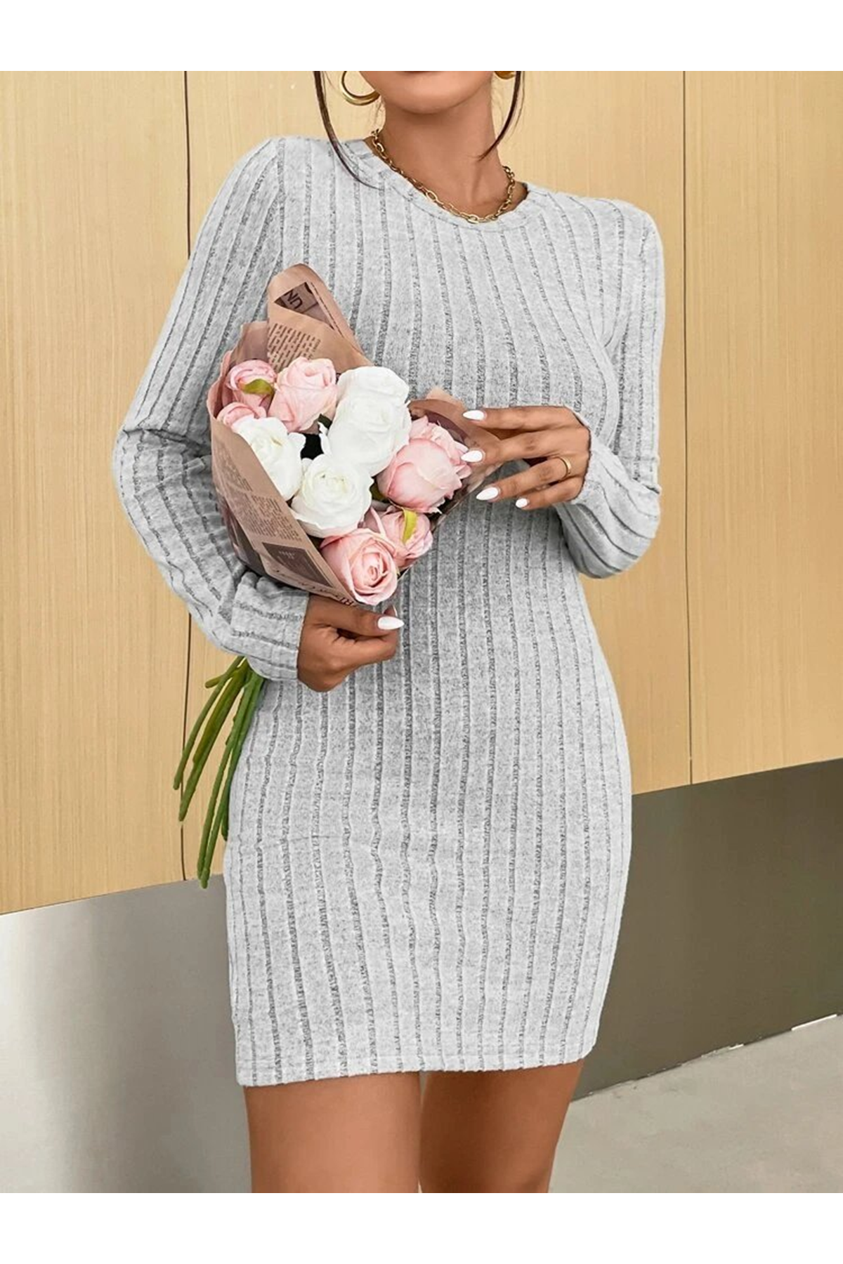 Kadın Uzun Kollu Bisiklet Yaka şardonlu Kalın Fitilli Kaşkorse Mini Boy Elbise