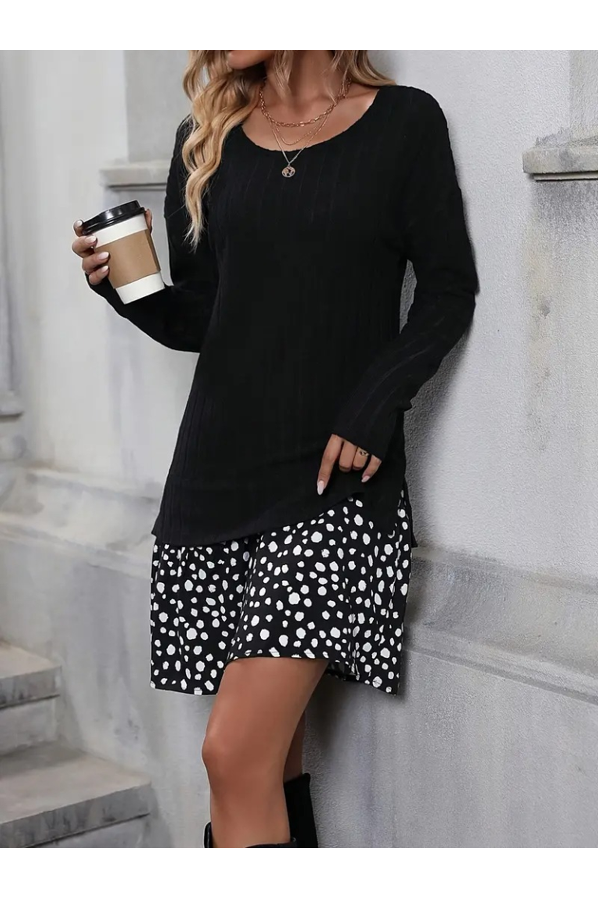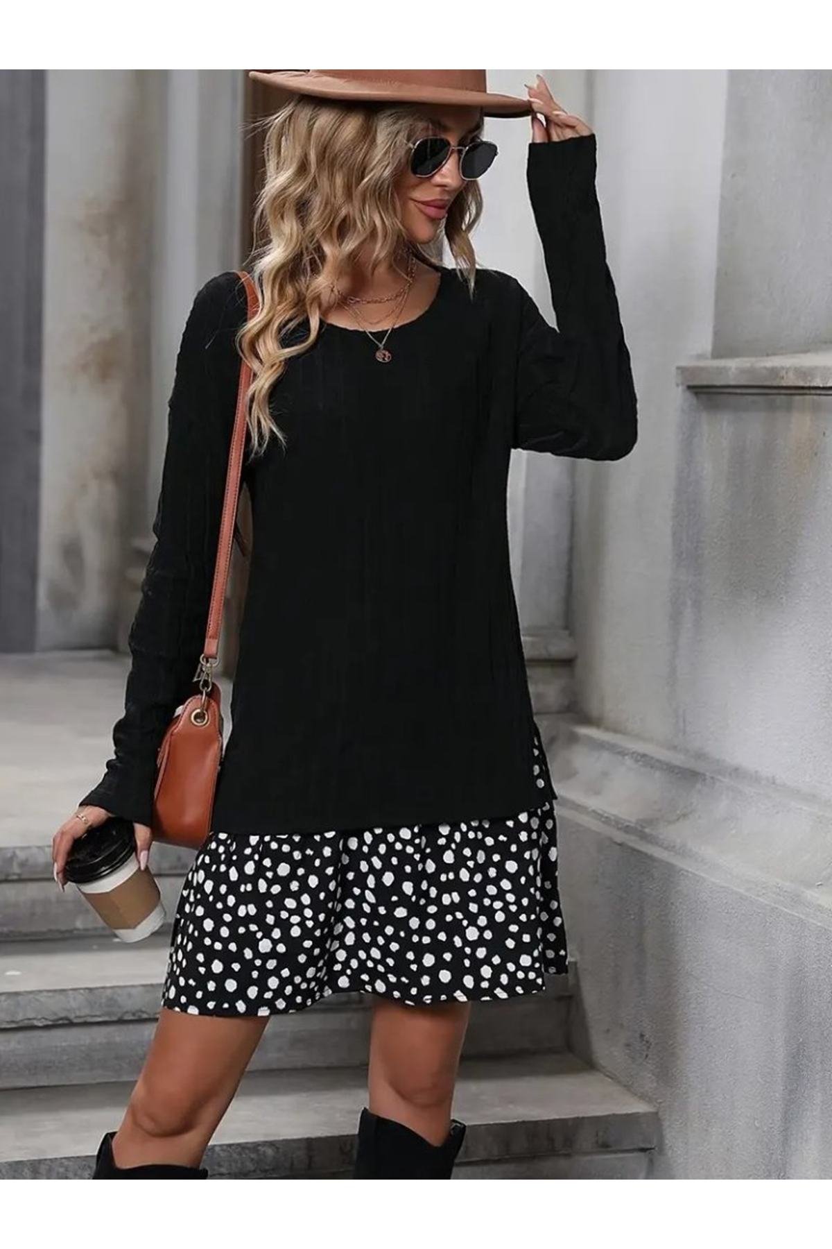 Kadın Uzun Kollu Bisiklet Yaka şardonlu Kaşkorse Bluz Ve Süprem Etek Elbise